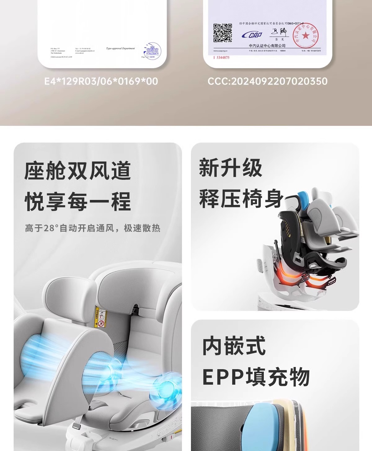 HBR Tiger Bell E360pro スマートベンチレーションバージョンチャイルドセーフティシート ISOFIX インターフェース 0-12 歳 PRO
