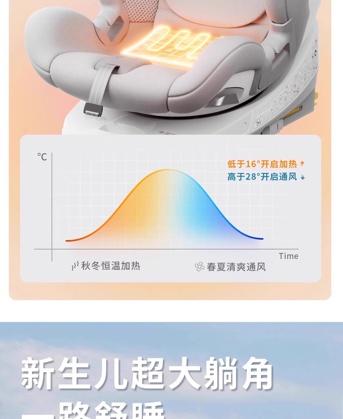 儿童安全座椅汽车用婴儿宝宝车载可坐躺0-12岁智能通风加热钢架