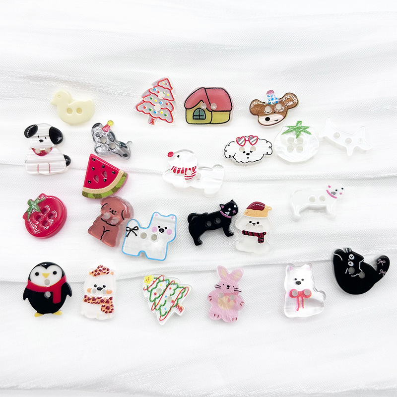 小清新格紋愛ボタン四眼歯車リンゴボタンプリント工芸ボタン服装靴花髪飾り部品