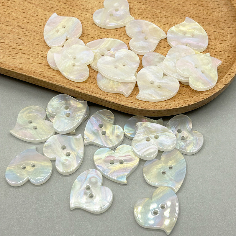 まねる貝の2つの目のまぶしい彩の愛のボタンの異形のハート型の樹脂AB彩のボタンのコートのセーターのDIY装飾のボタン