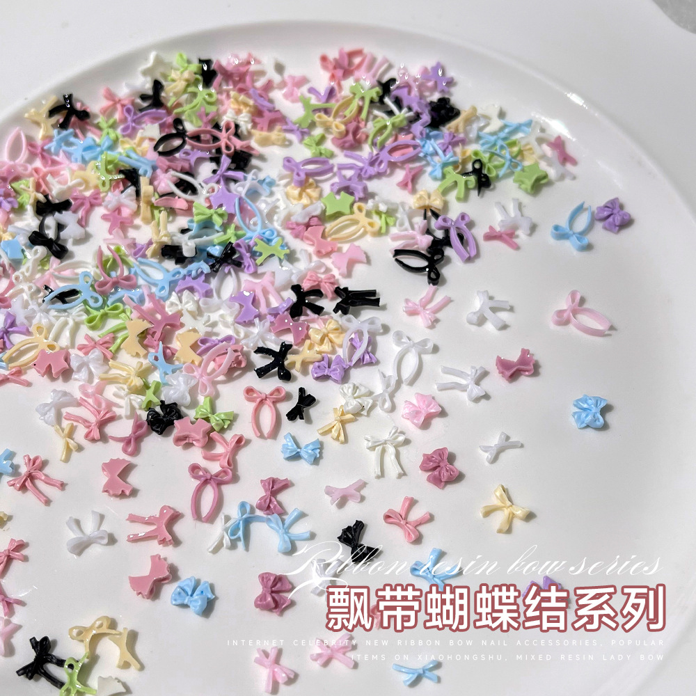 ミニ混載蝶結びネイルアクセサリー透かし彫り甘い大トランペット立体リボン蝶ネクタイ樹脂ネイルアクセサリー