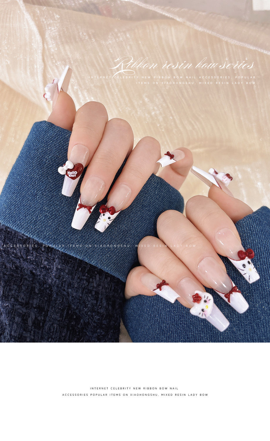 12格卡通蝴蝶结美甲饰品混装秋冬美拉德彩色立体树脂领结指甲装饰