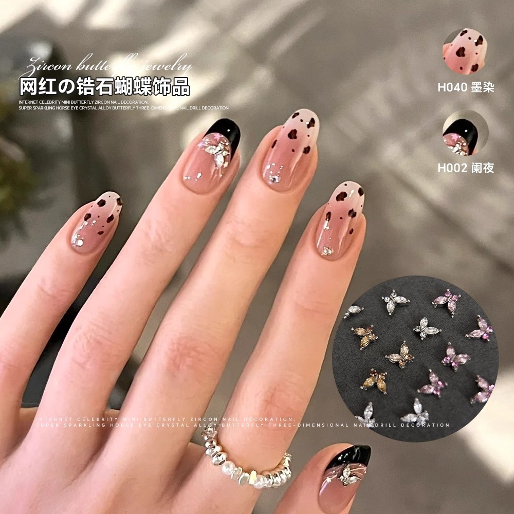 爆闪锆石蝴蝶美甲饰品网红爆款甜酷迷你合金马眼装饰素材美甲钻饰