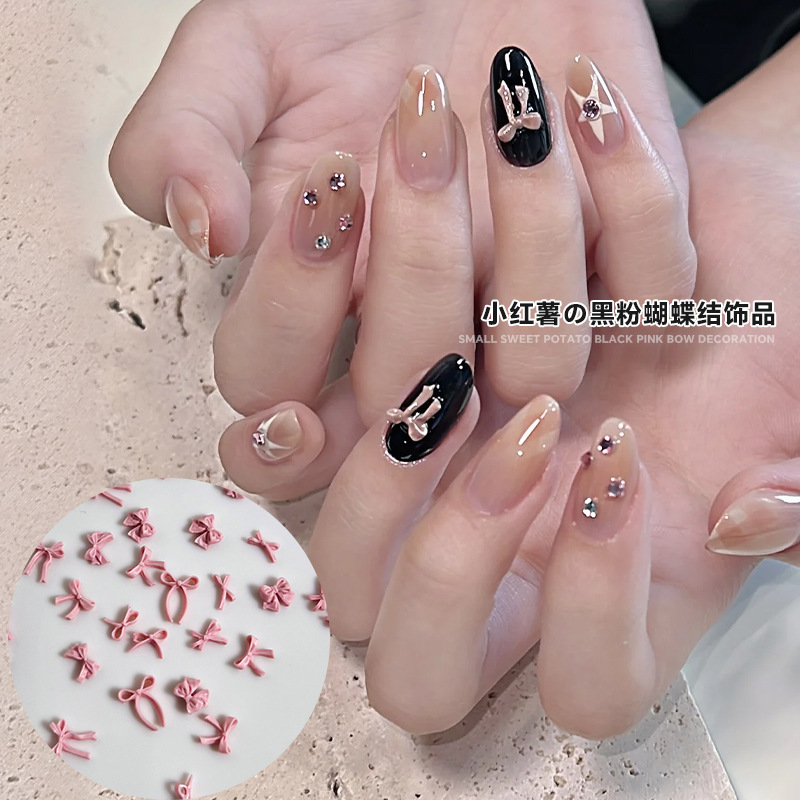 ミニ蝶結びのネイルアクセサリーを混ぜてネットレッドの爆発的なカラーをします。リボンの樹脂ネイルアクセサリーを持っています。