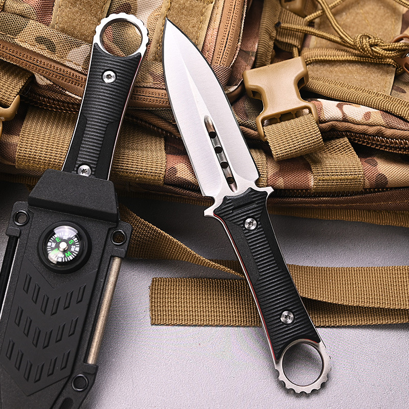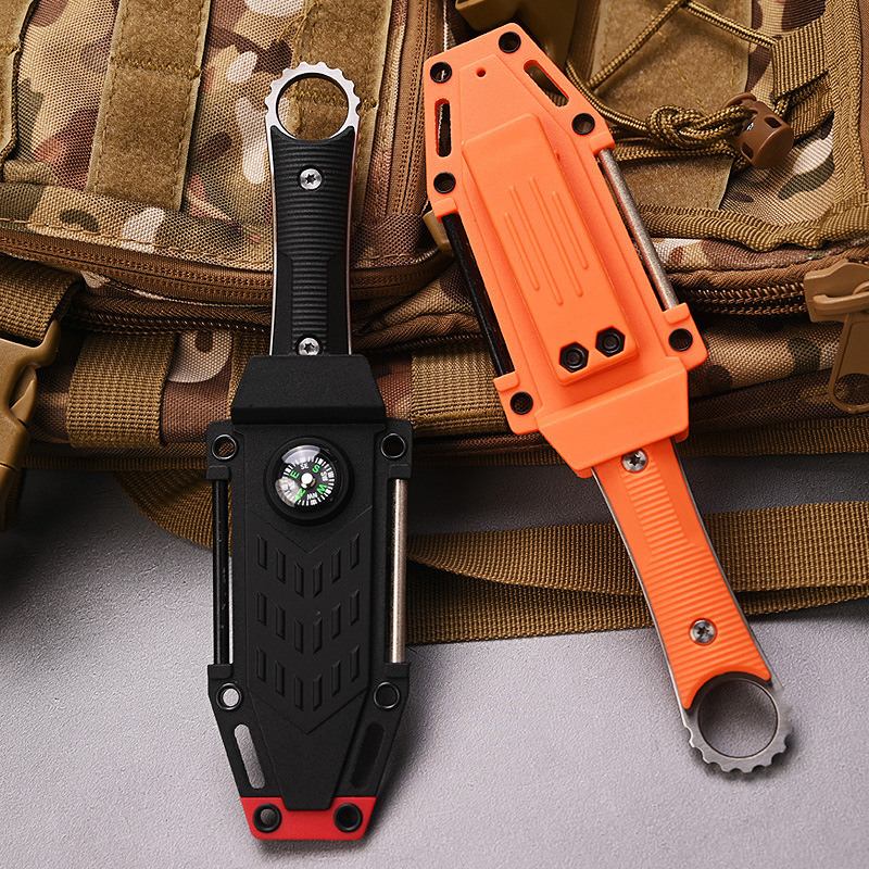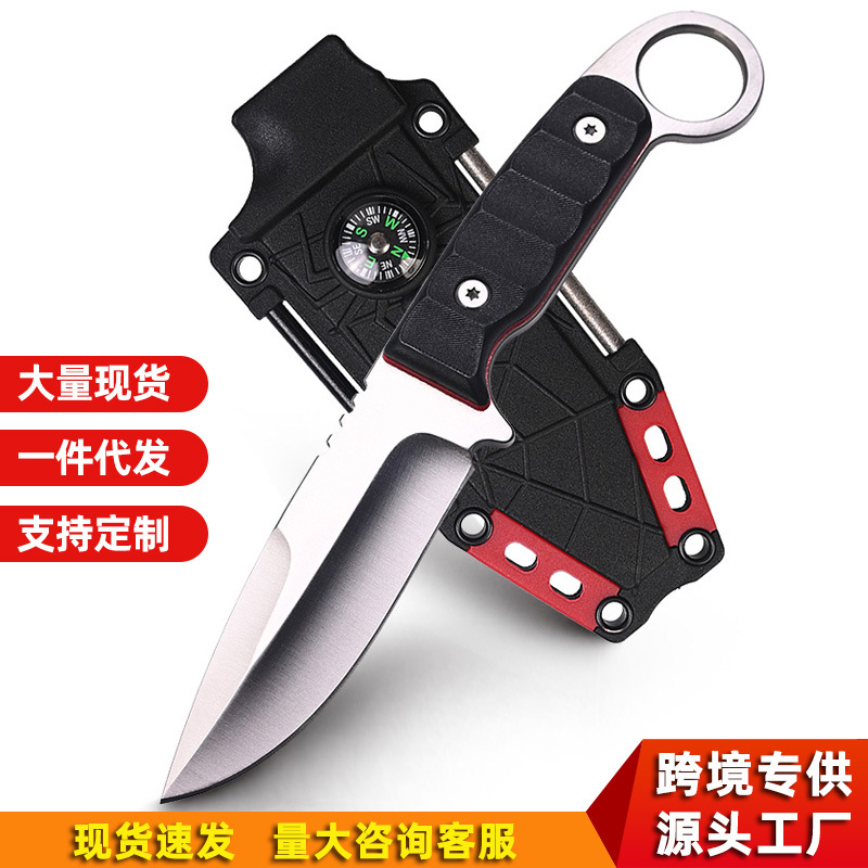 クロスボーダーホット販売屋外コンパスポータブルストレートナイフキャンプのアイデアサバイバル防身ナイフ多機能アウトドアナイフ
