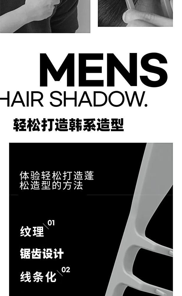 ABS韩国蓬松纹理造型梳发根蓬松男生造型遮盖刘海发缝美发梳夹板