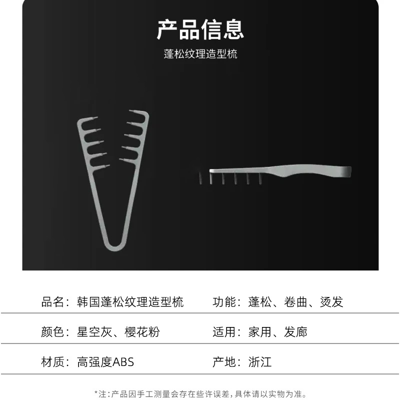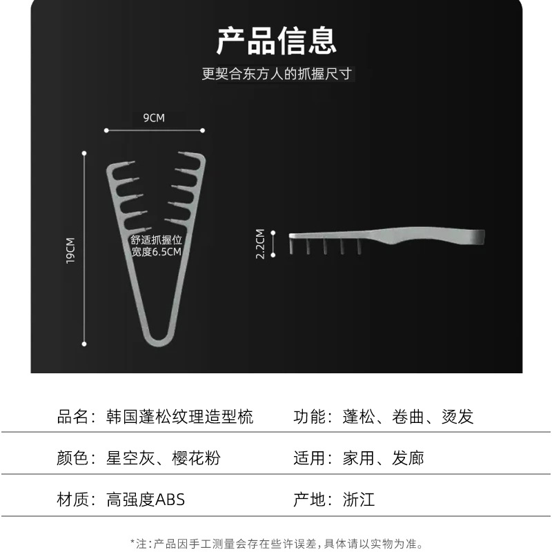 跨境爆款高弹ABS韩国纹理造型梳蓬发男女造型发缝遮盖刘海美发梳
