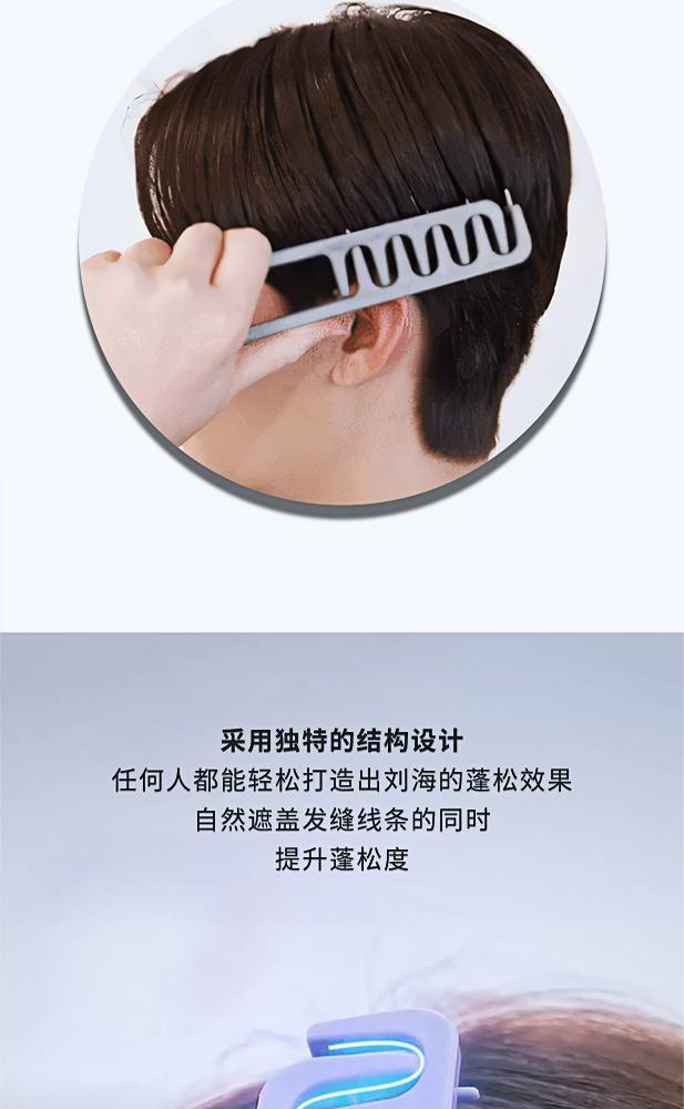 国境を越えて人気の新作ABS製ふわふわスタイリングコーム、男女兼用、髪の隙間を隠す前髪コーム、高頭頂部用ヘアコーム