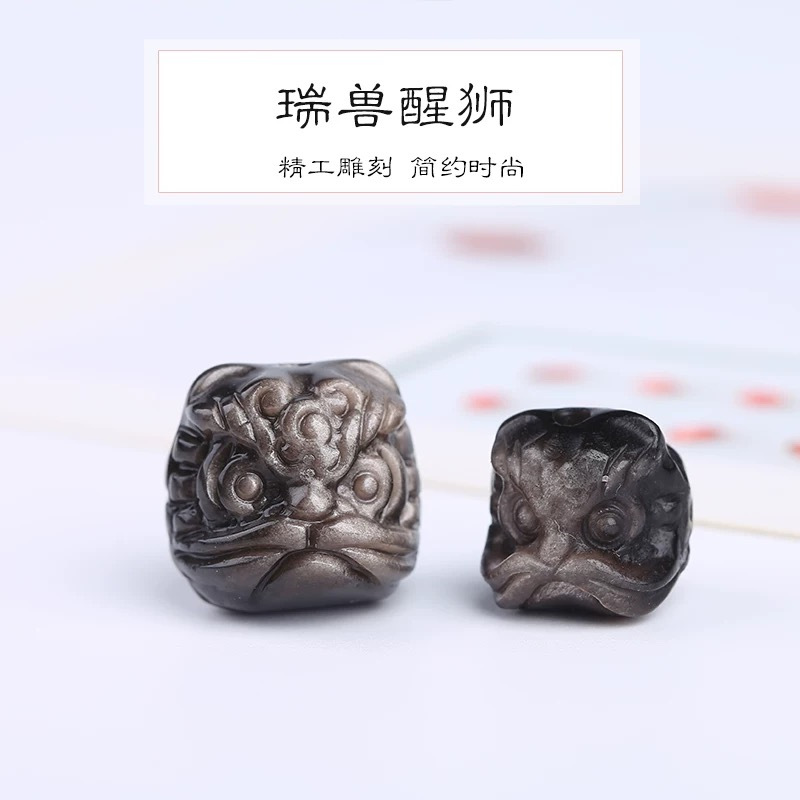 ロン・ジアリ天然銀曜石獅子彫刻ビーズDIYアクセサリーペンダントブレスレットアクセサリー中国風ジュエリー