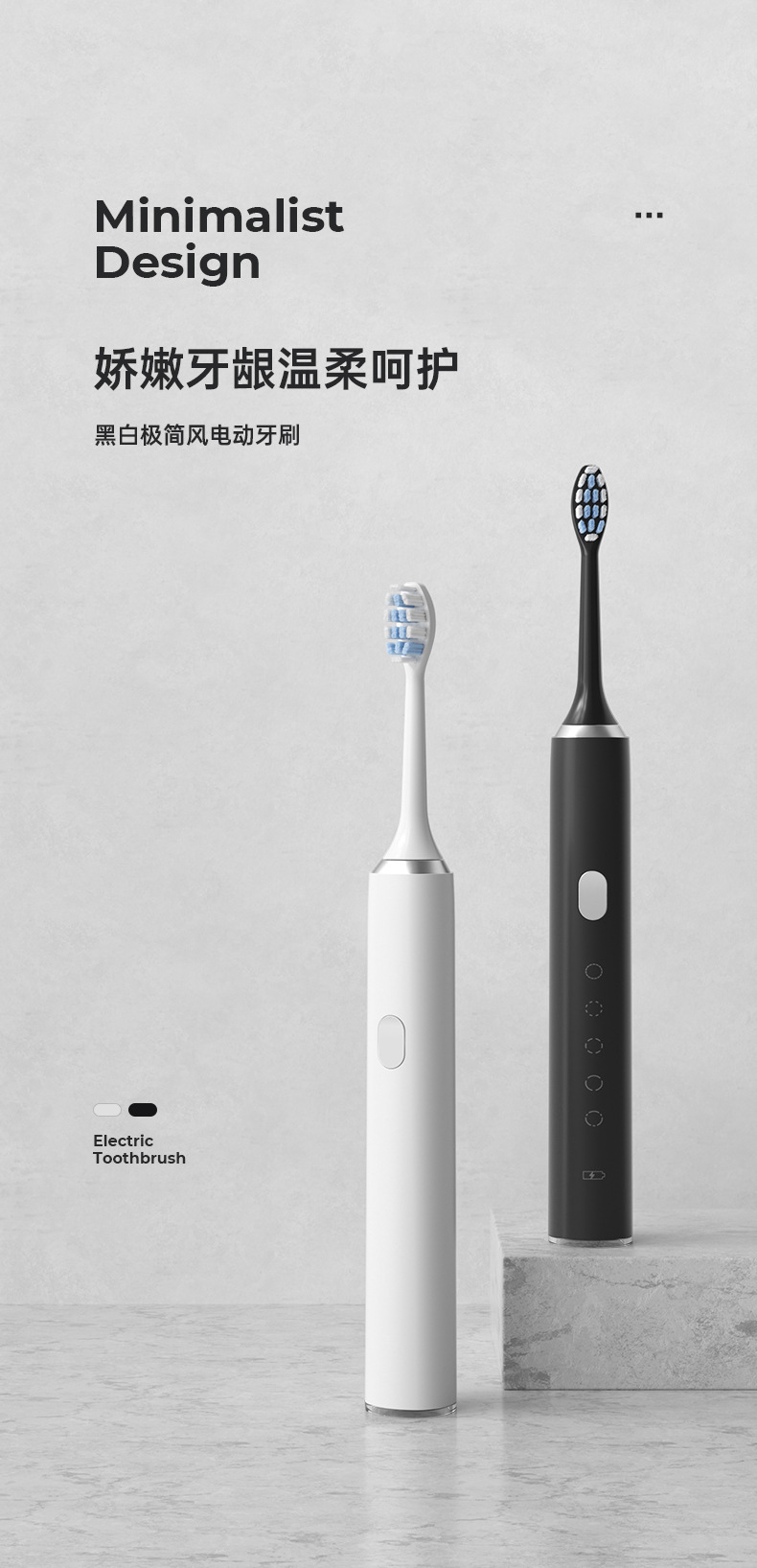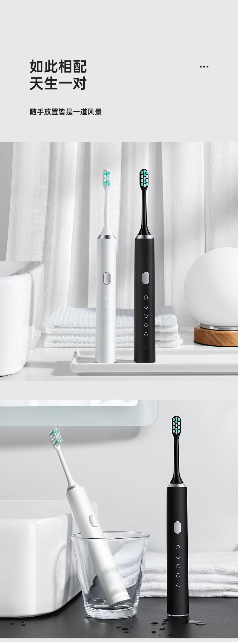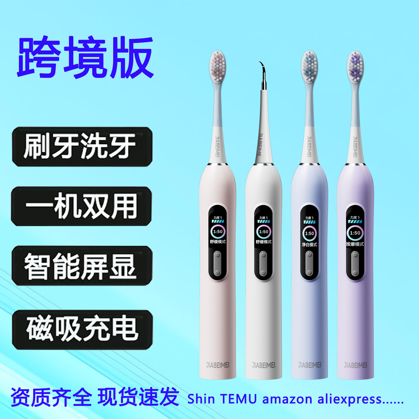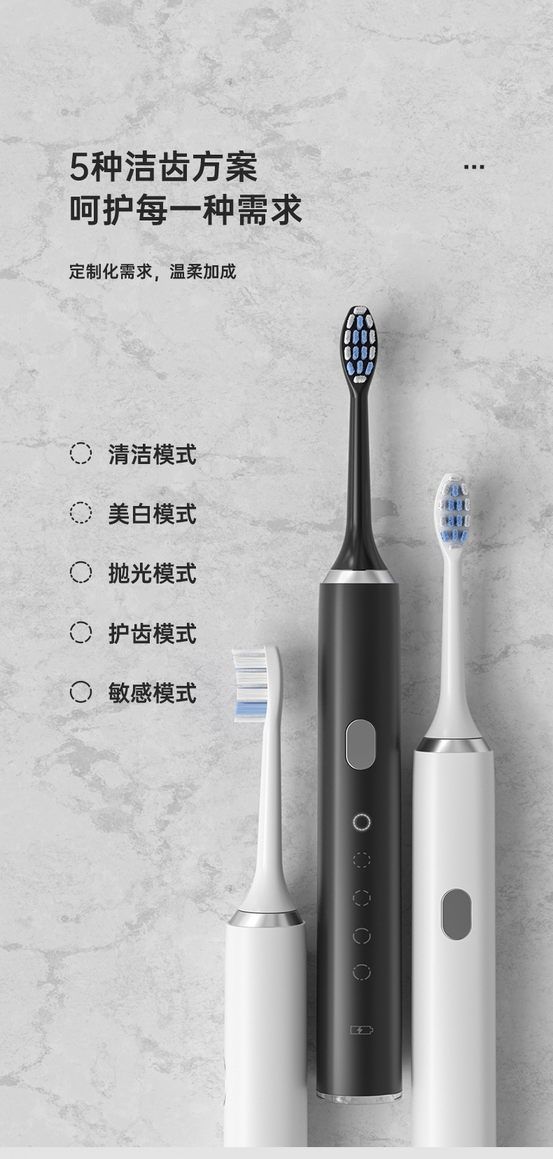 跨境批发智能电动洁牙二合一成人学生自动软毛刷头声波电子牙刷