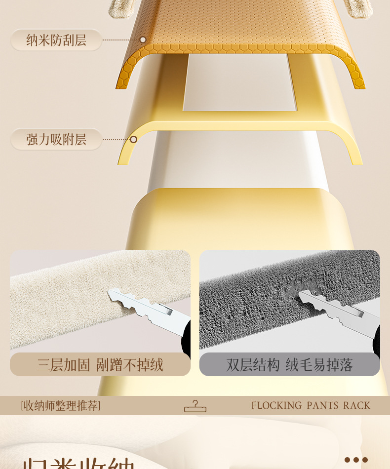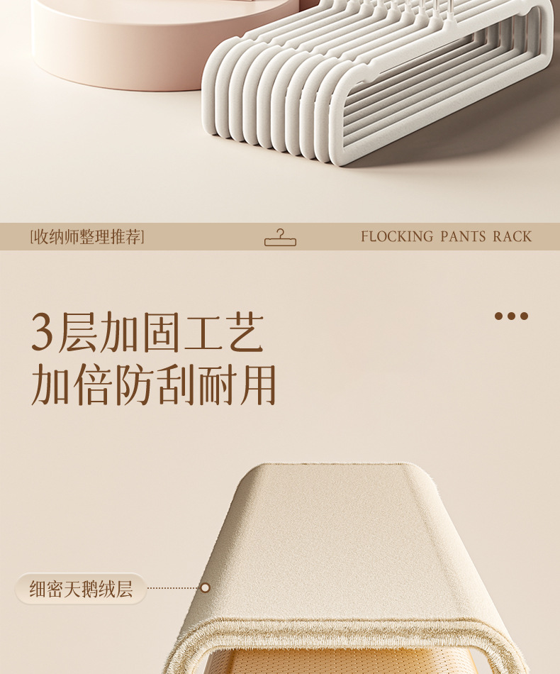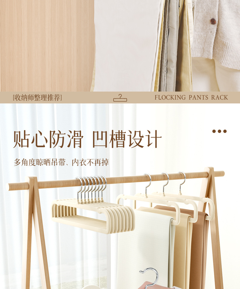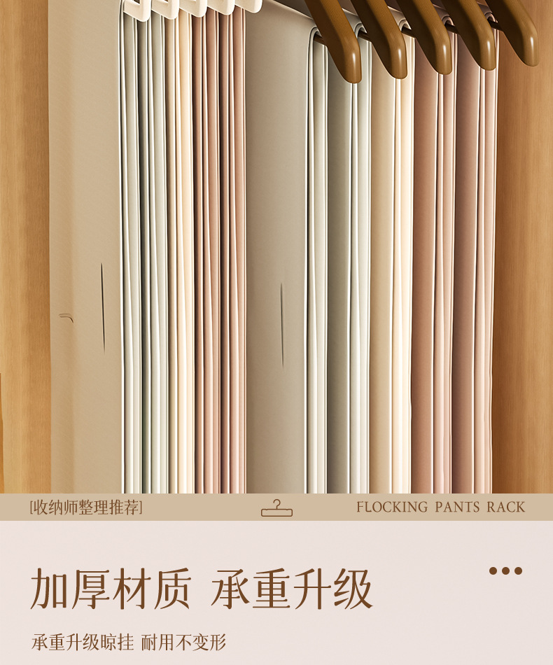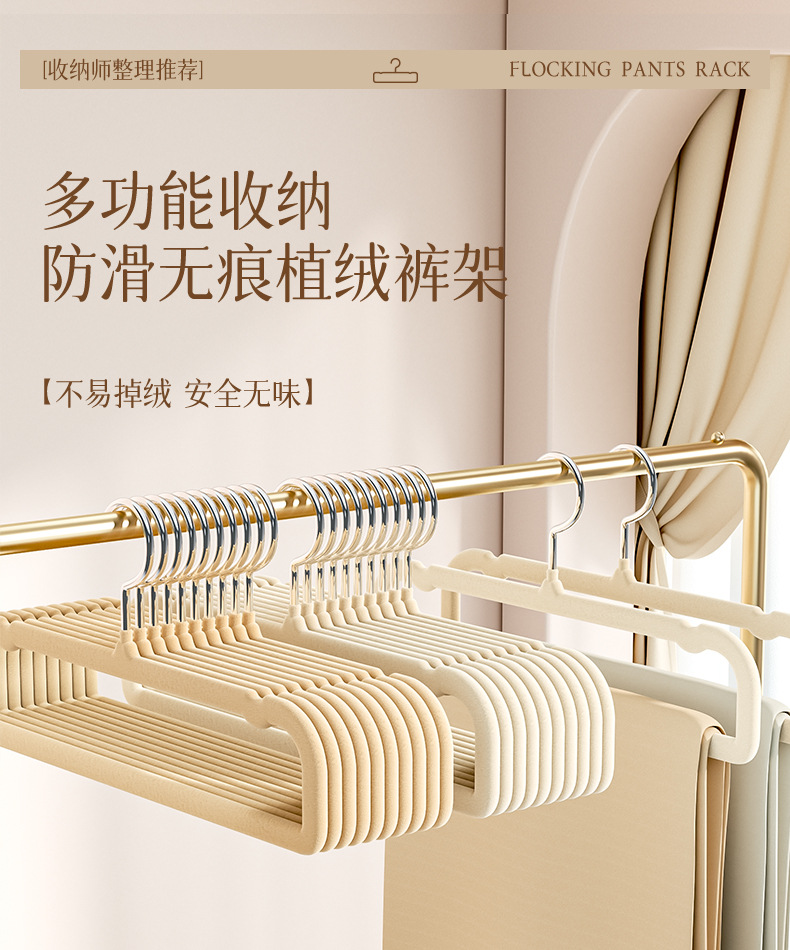 日本式植毛ズボンハンガー乾湿両用整理師滑り止め無痕ハンガーズボンハンガー高級家庭用無痕服