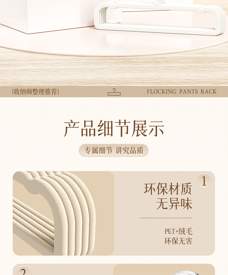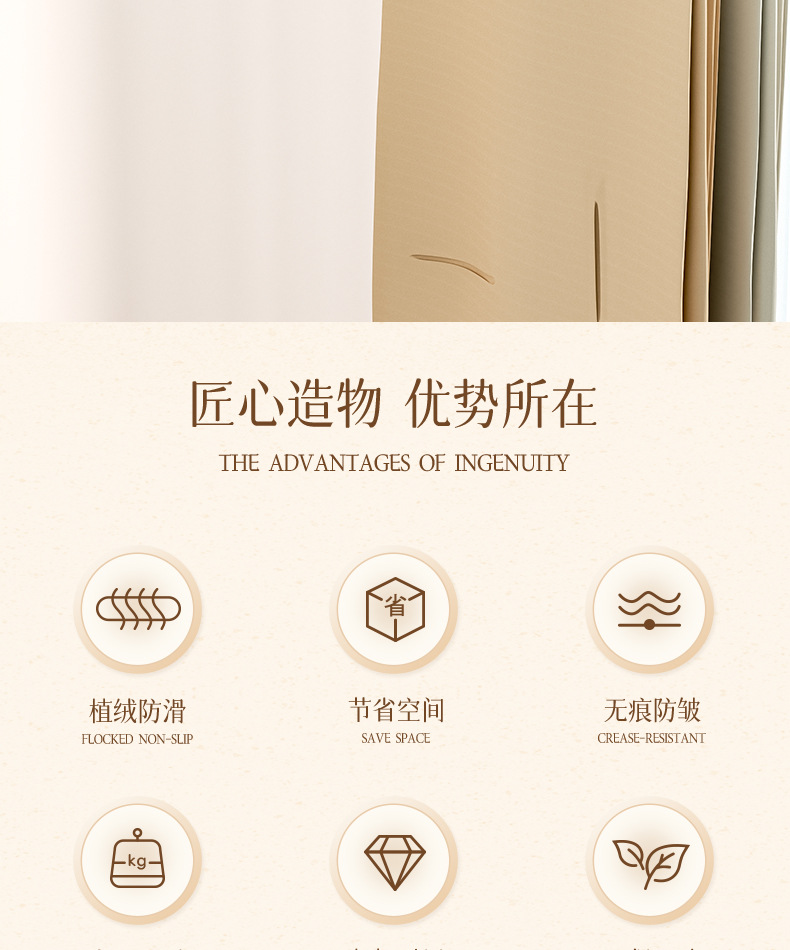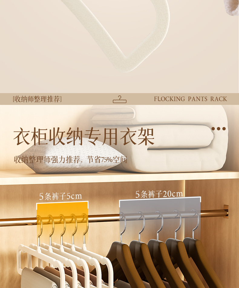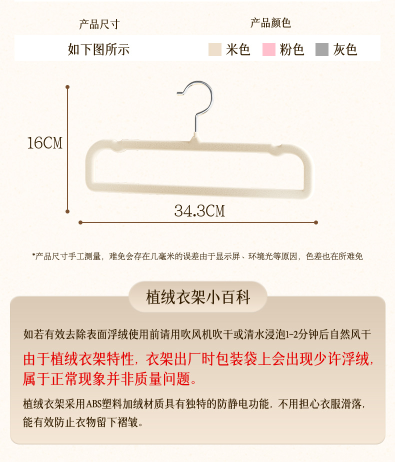 首の短い植毛ハンガー家庭用タンスに服を掛けて滑り止めをします。