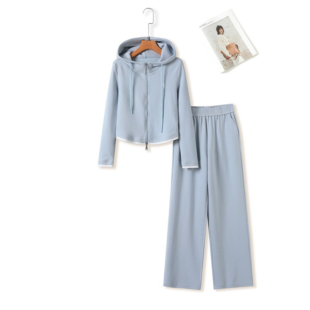 ファッションカジュアルスーツ女性2025春装新型減齢上着カーディガンストレートパンツ2点セット黒スーツ