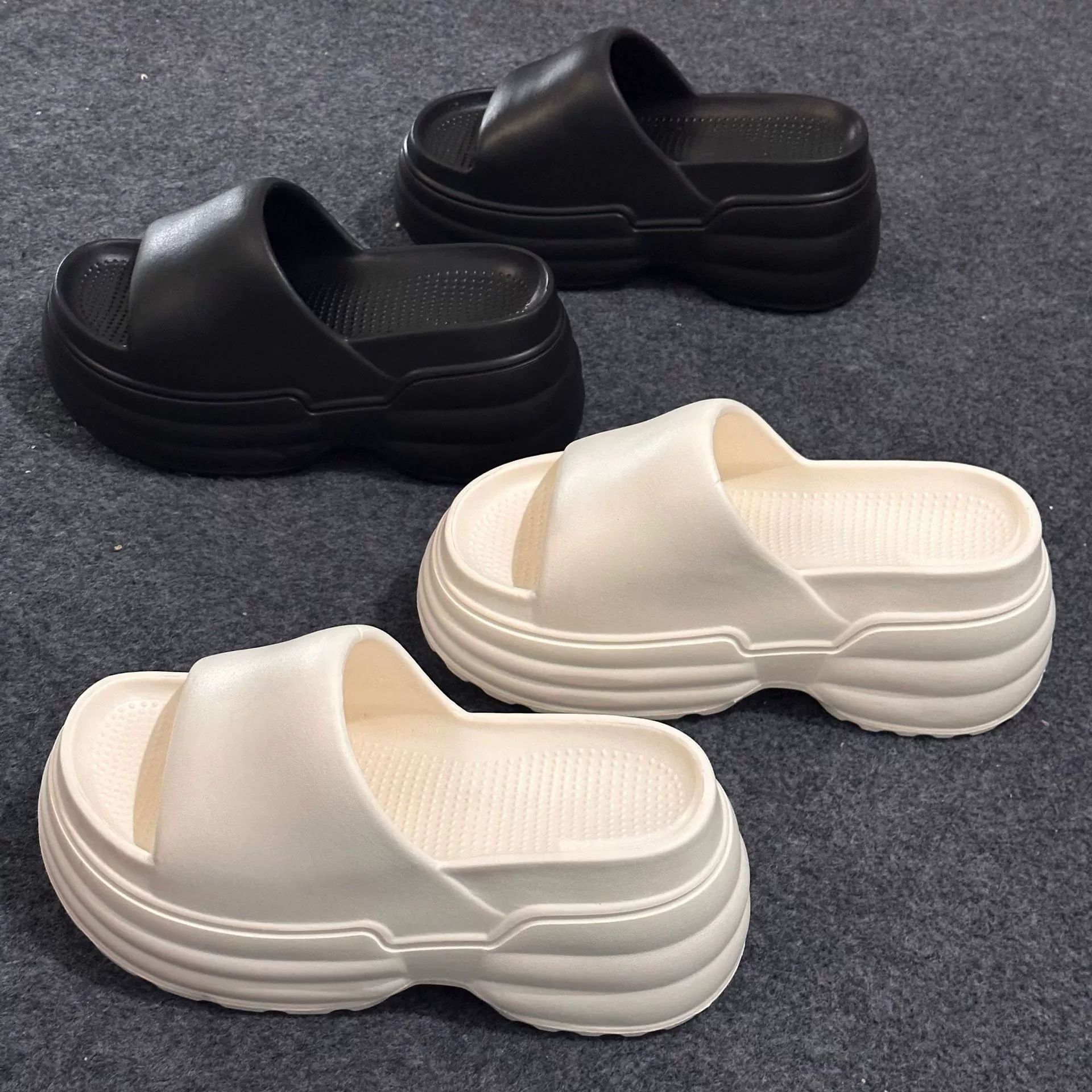 高くなって厚い底のスリッパの女性の2025年の夏の新型の赤い星の1字のスリッパの外で砂浜のサンダルを着ます。