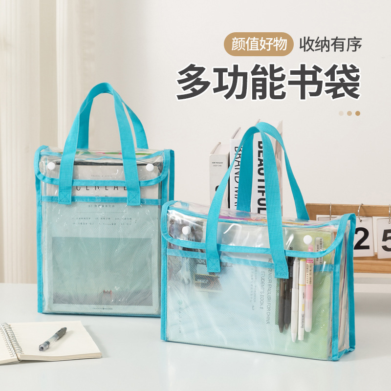 PVC透明塾バッグ、書類バッグ、見栄えの良い学生試験バッグ、ポータブルブックバッグ、防水収納バッグ