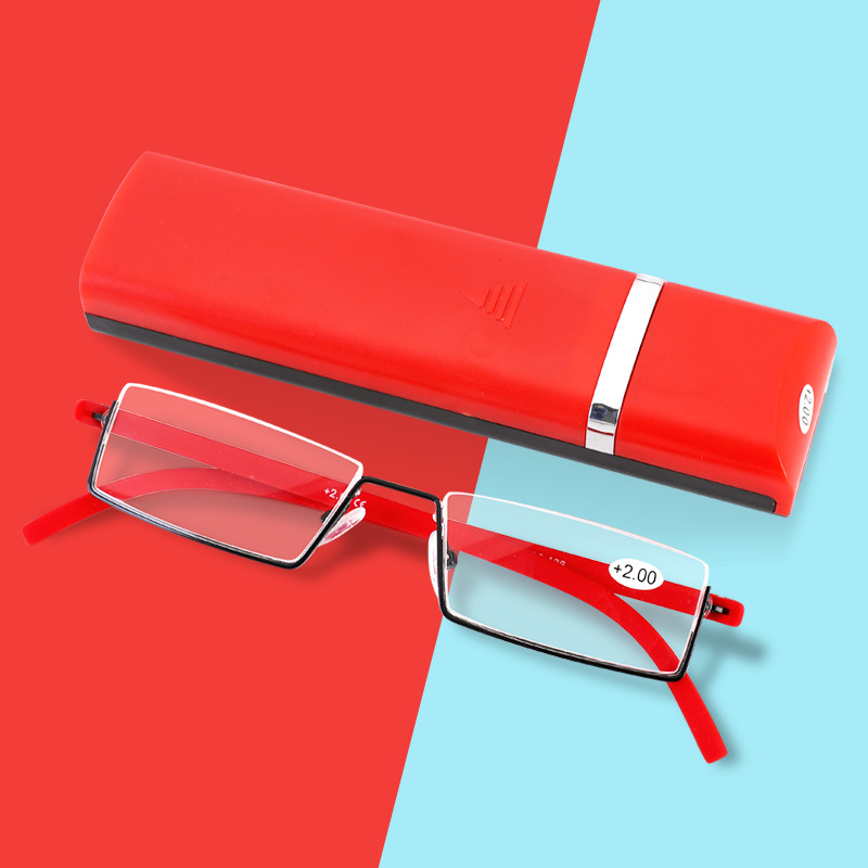 新型tr老眼鏡良質ステンレス半枠ケース付きメーカー直供老眼鏡携帯卸売り