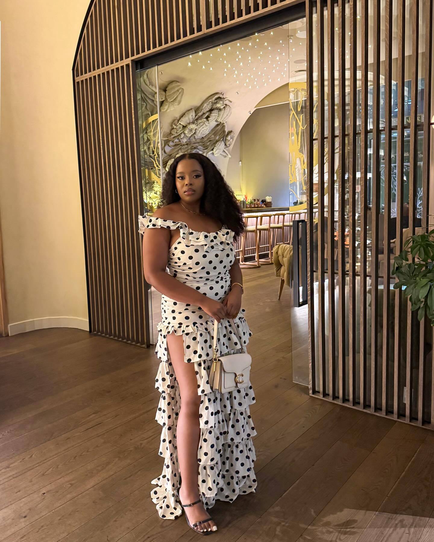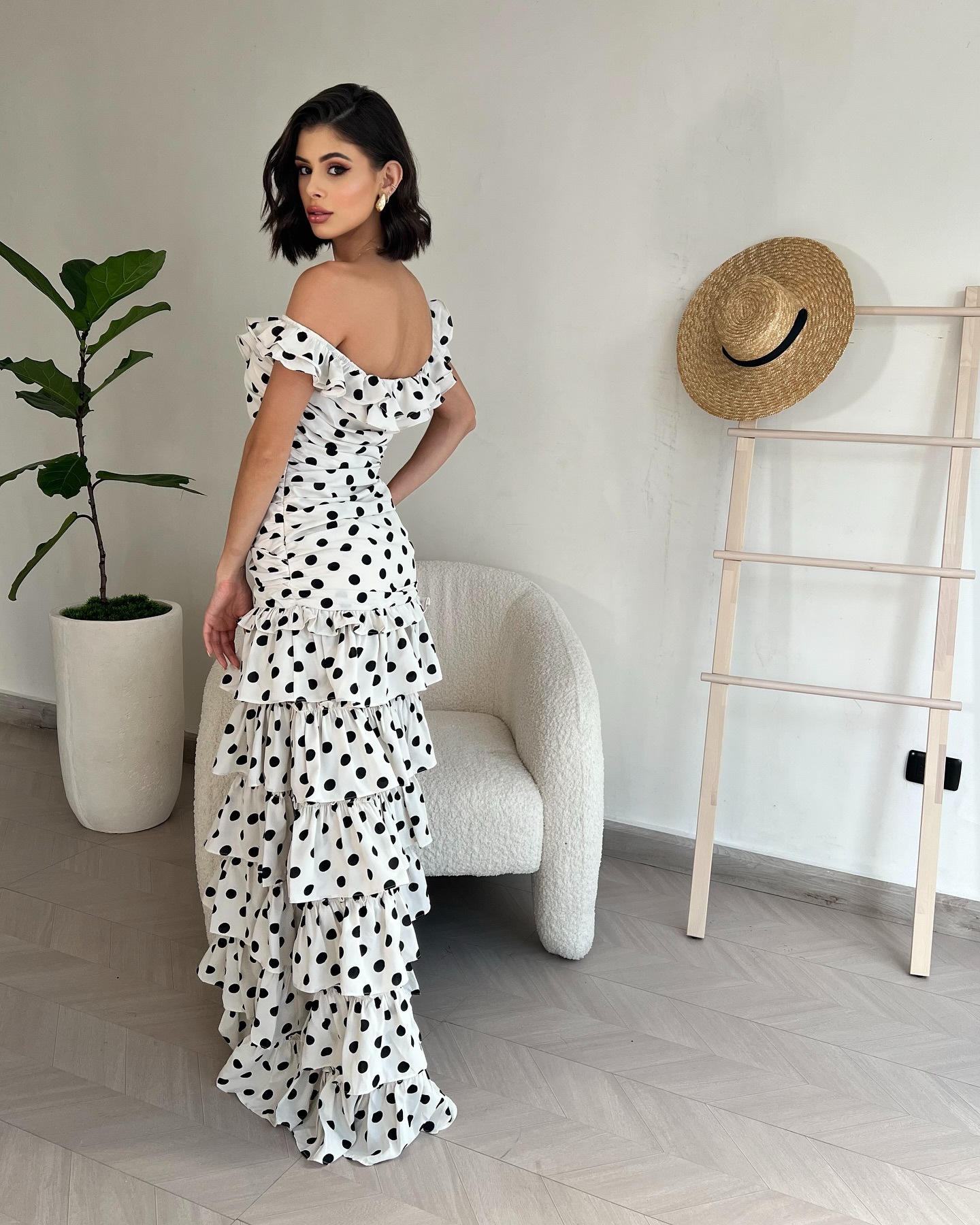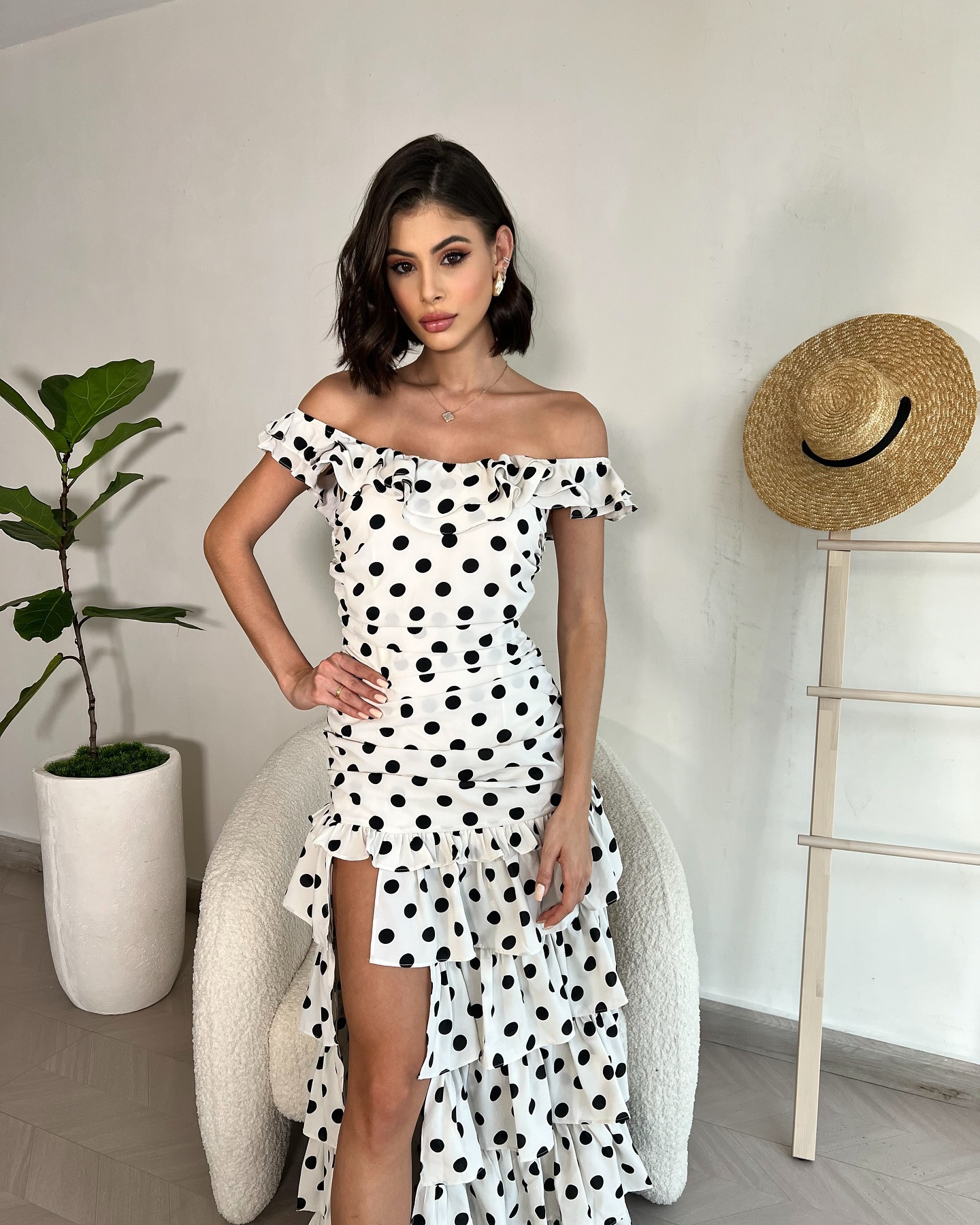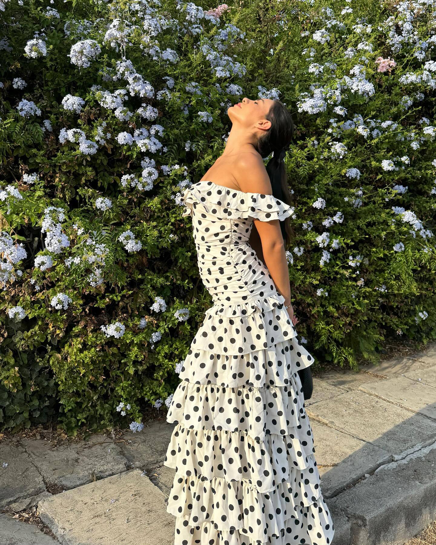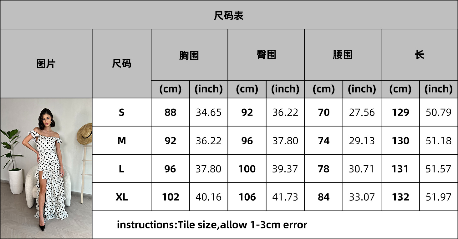2025越境欧米アマゾン春夏新作一字肩フランス優雅レトロ白黒波点ワンピース