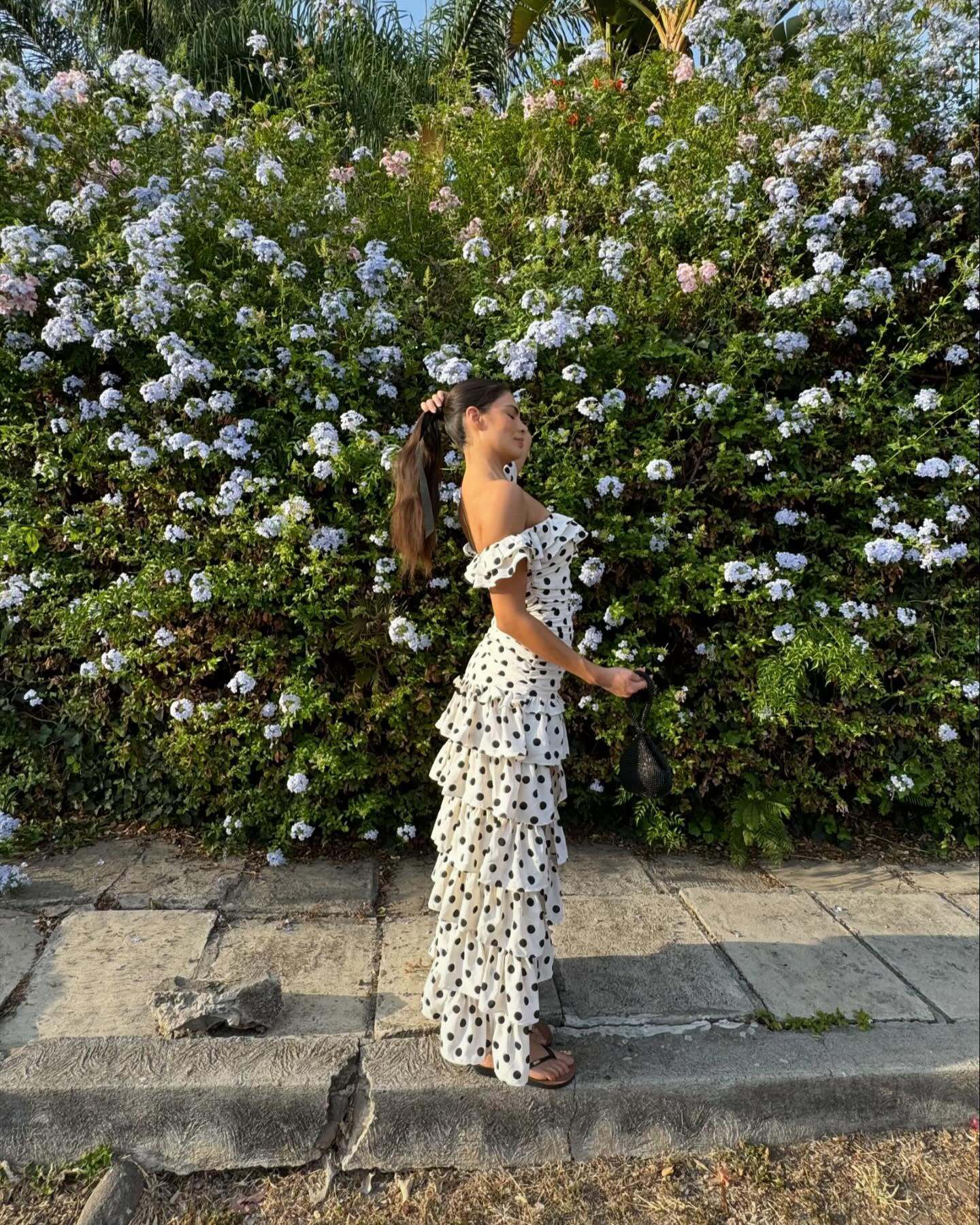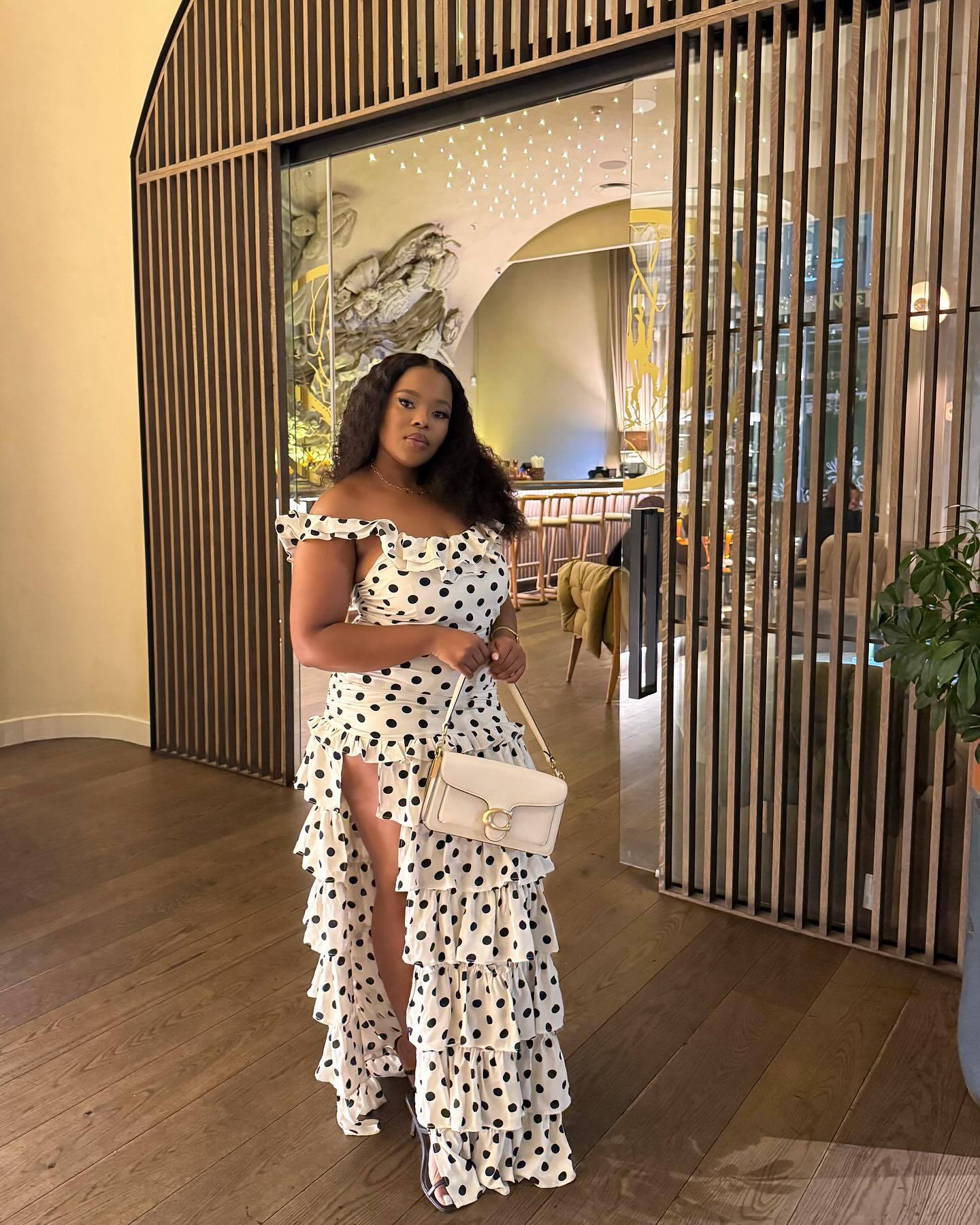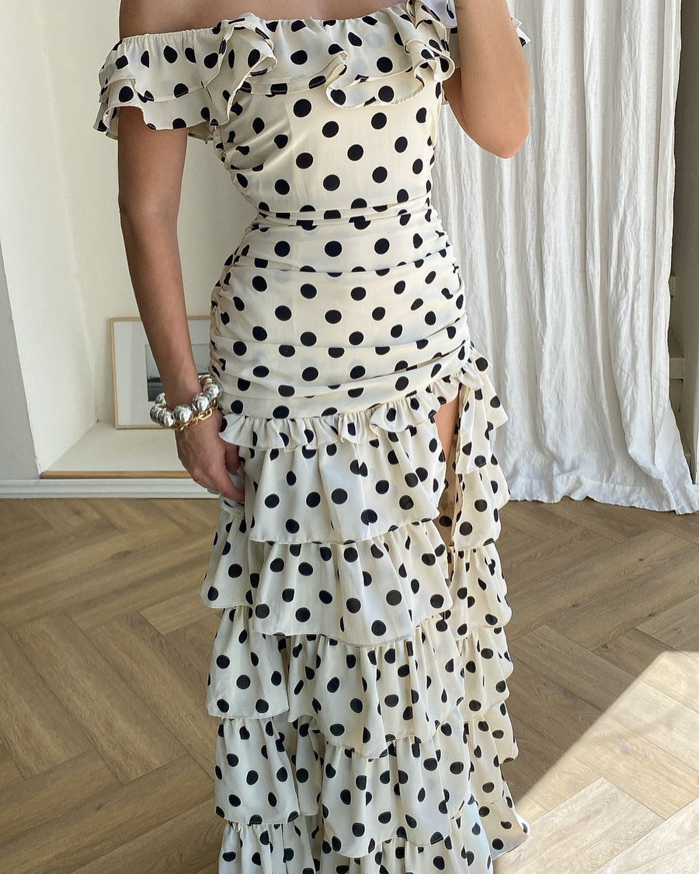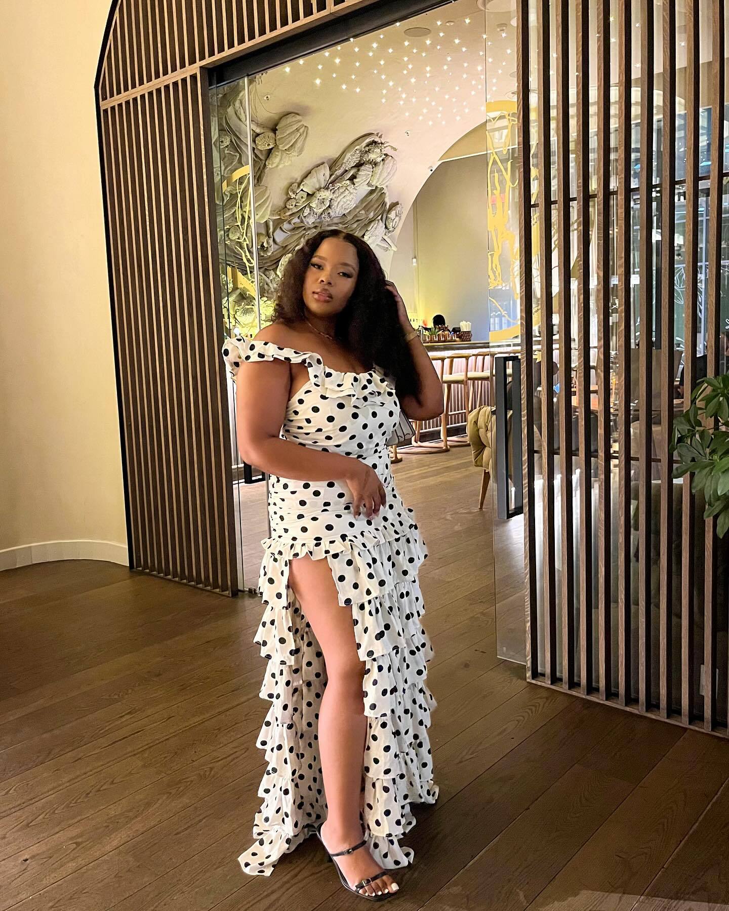 2025越境欧米アマゾン春夏新作一字肩フランス優雅レトロ白黒波点ワンピース