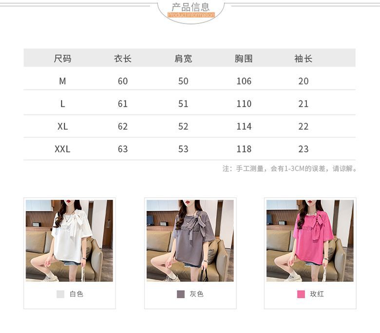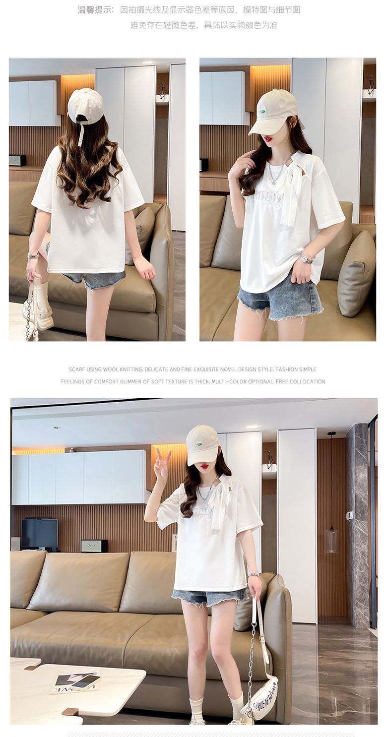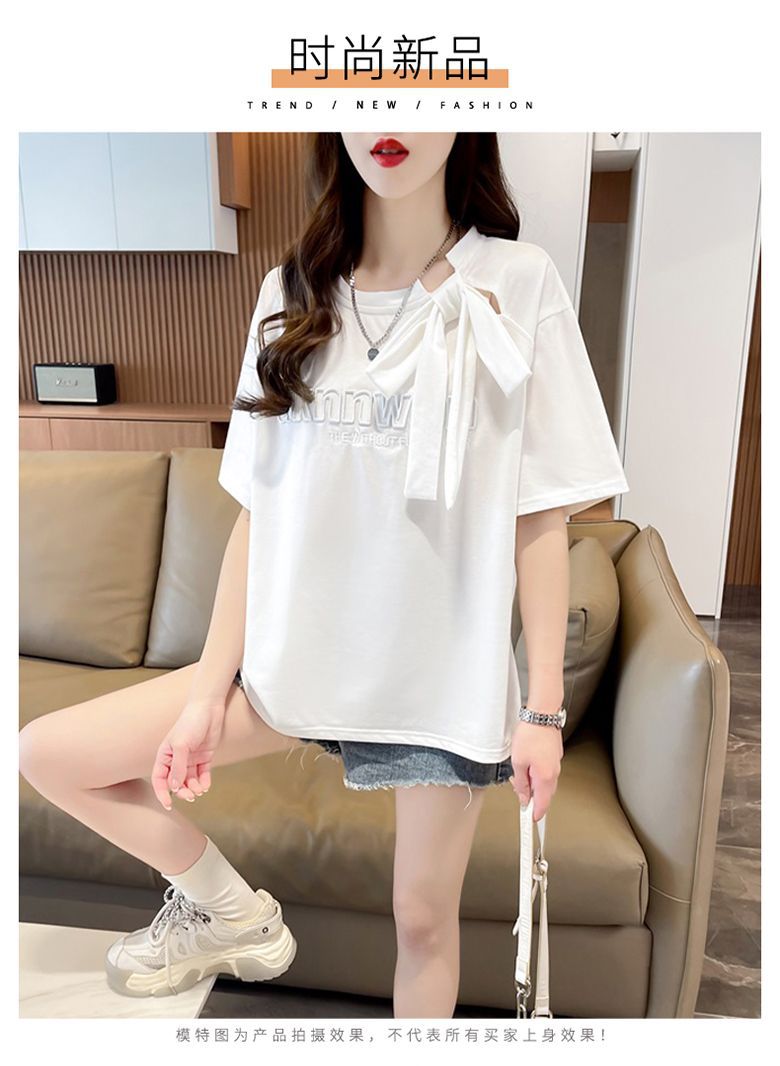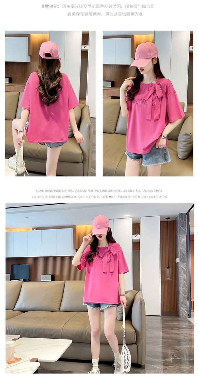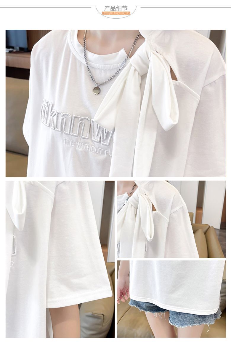 夏のデザイン感蝶結びtシャツ女性2025新刺繍アルファベットゆるい小柄半袖上着女性潮