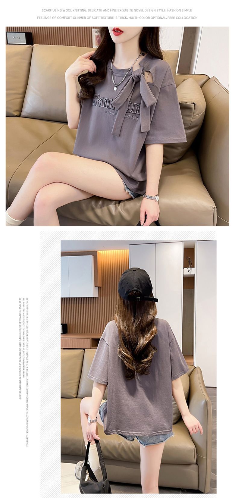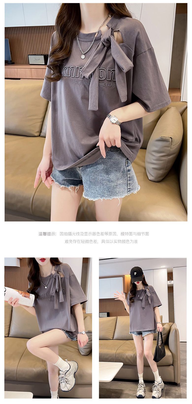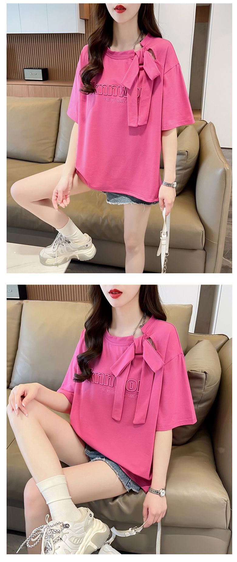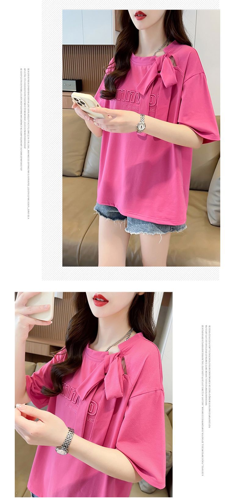 夏のデザイン感蝶結びtシャツ女性2025新刺繍アルファベットゆるい小柄半袖上着女性潮