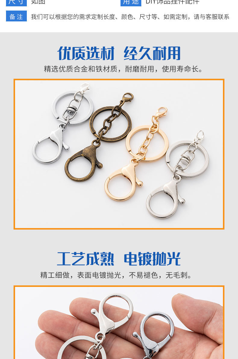 龙虾扣三件套保色diy手工饰品配件 厂家批发钥匙扣圈链金属挂件30