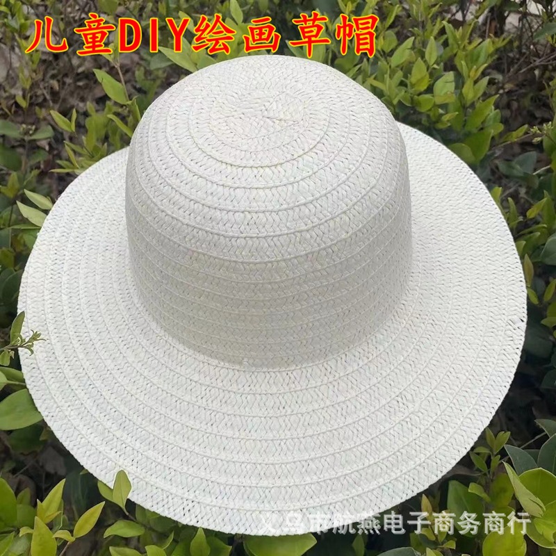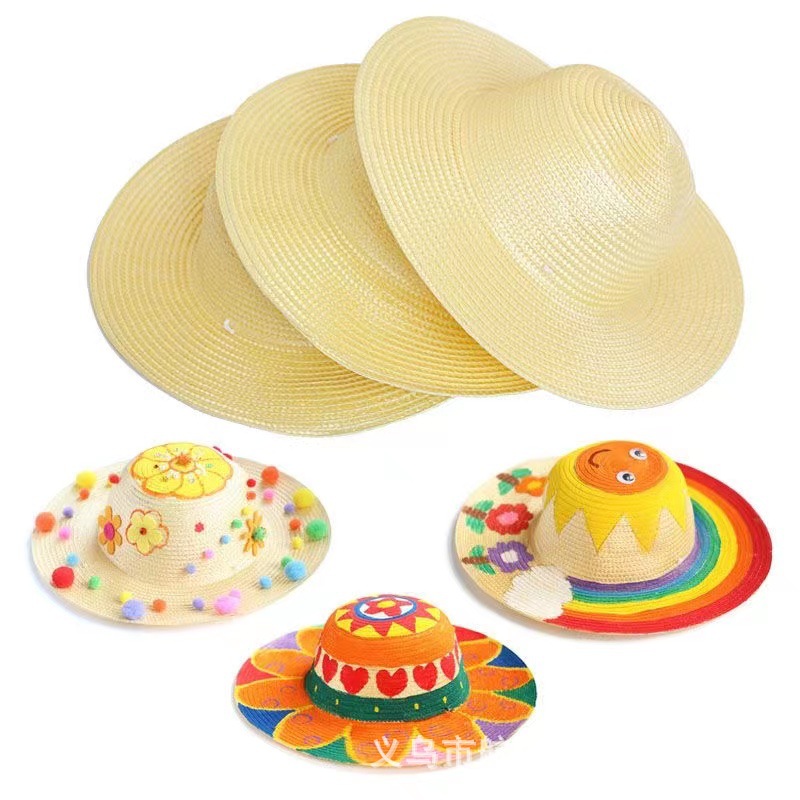 空白麦わら帽子子供絵画帽子手作りdiy手描き落書き幼稚園画室美術装飾