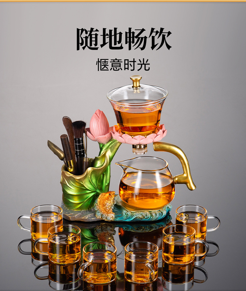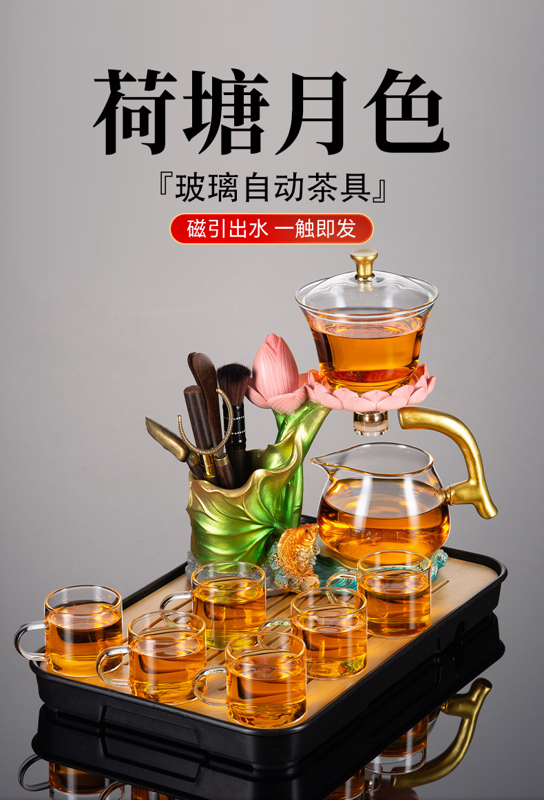 怠け者自動茶器セット家庭用ガラス工夫ティーポット茶盤セットオフィス磁気吸引茶神器