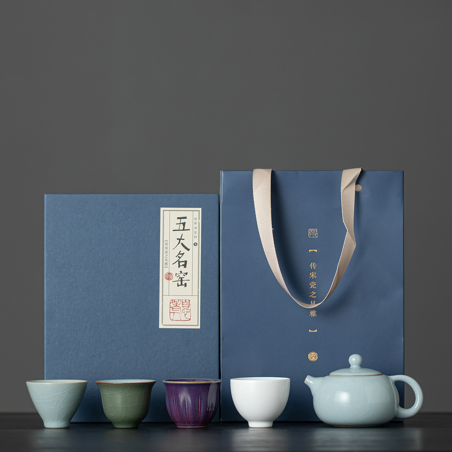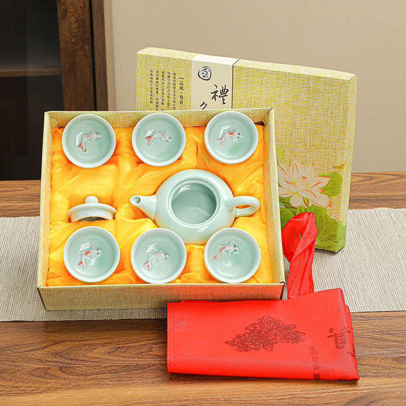 青磁カンフー茶器セット家庭用屋外ポータブルギフト茶器ビジネスギフトセットお土産