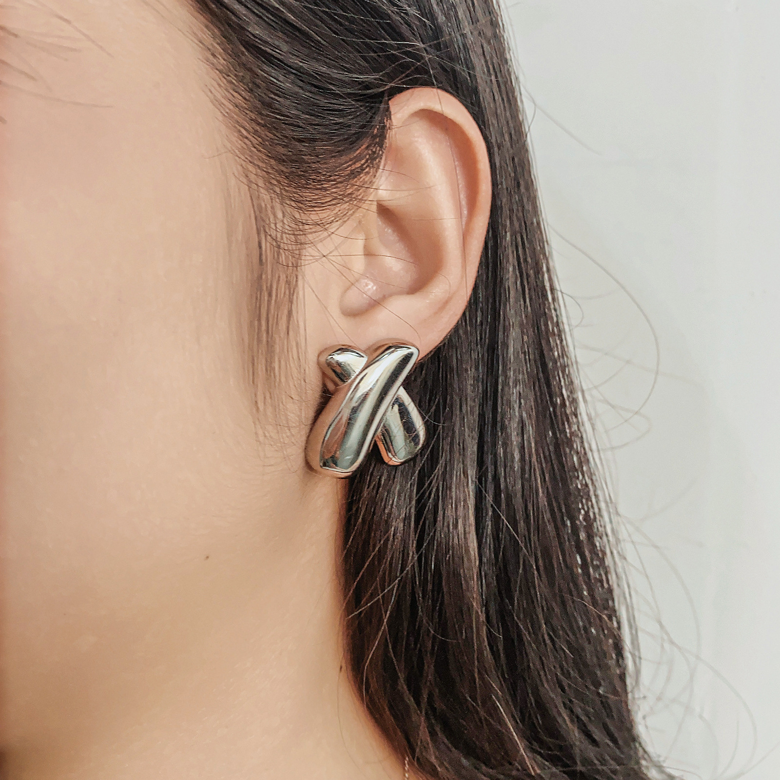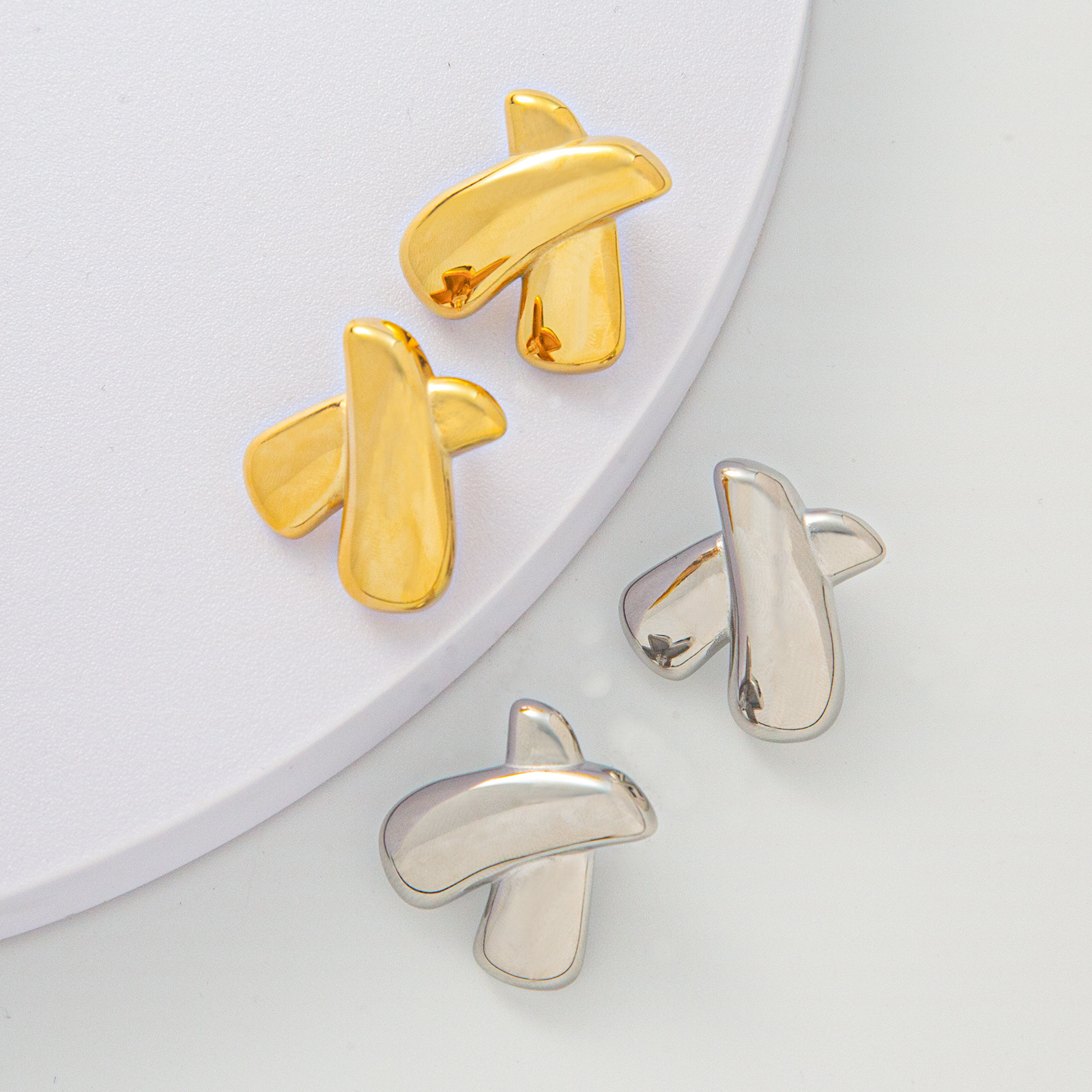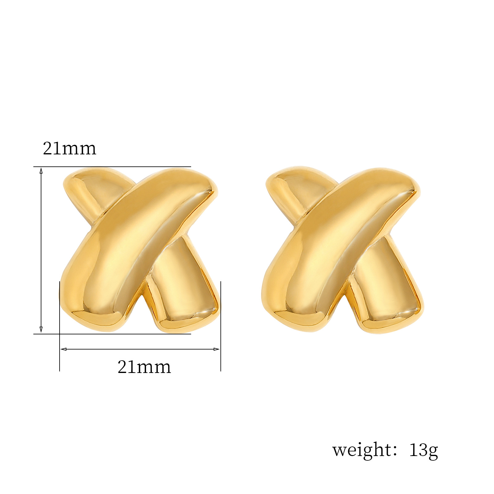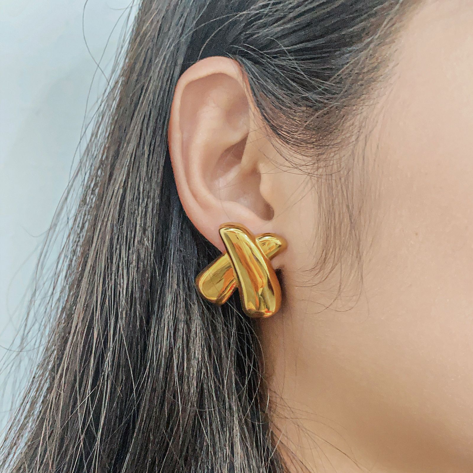产品名称:欧美跨境热卖X字母耳钉不锈钢镀18K金时尚大气设计感百搭耳饰女