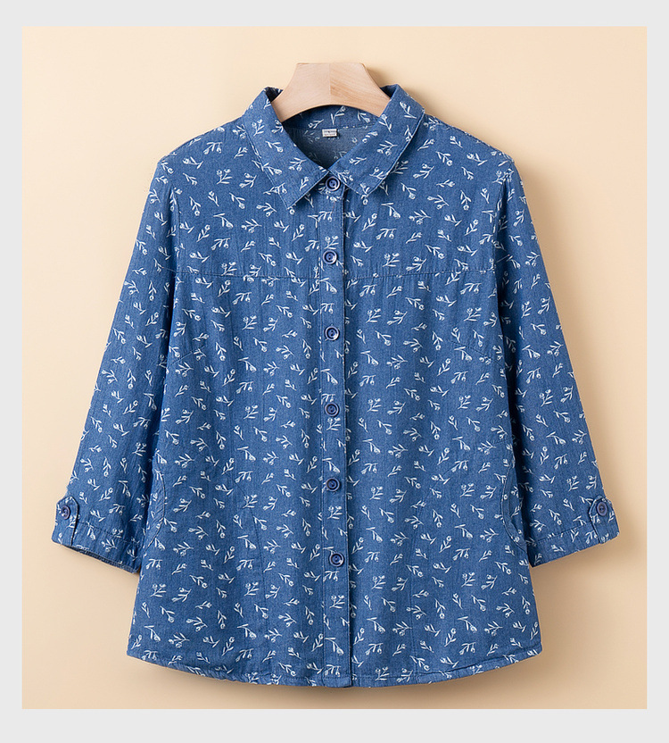 中高年向け春秋デニムシャツ、お母さん向け長袖シャツ、お年寄りおばあちゃん向けアウター、大きいサイズトップス