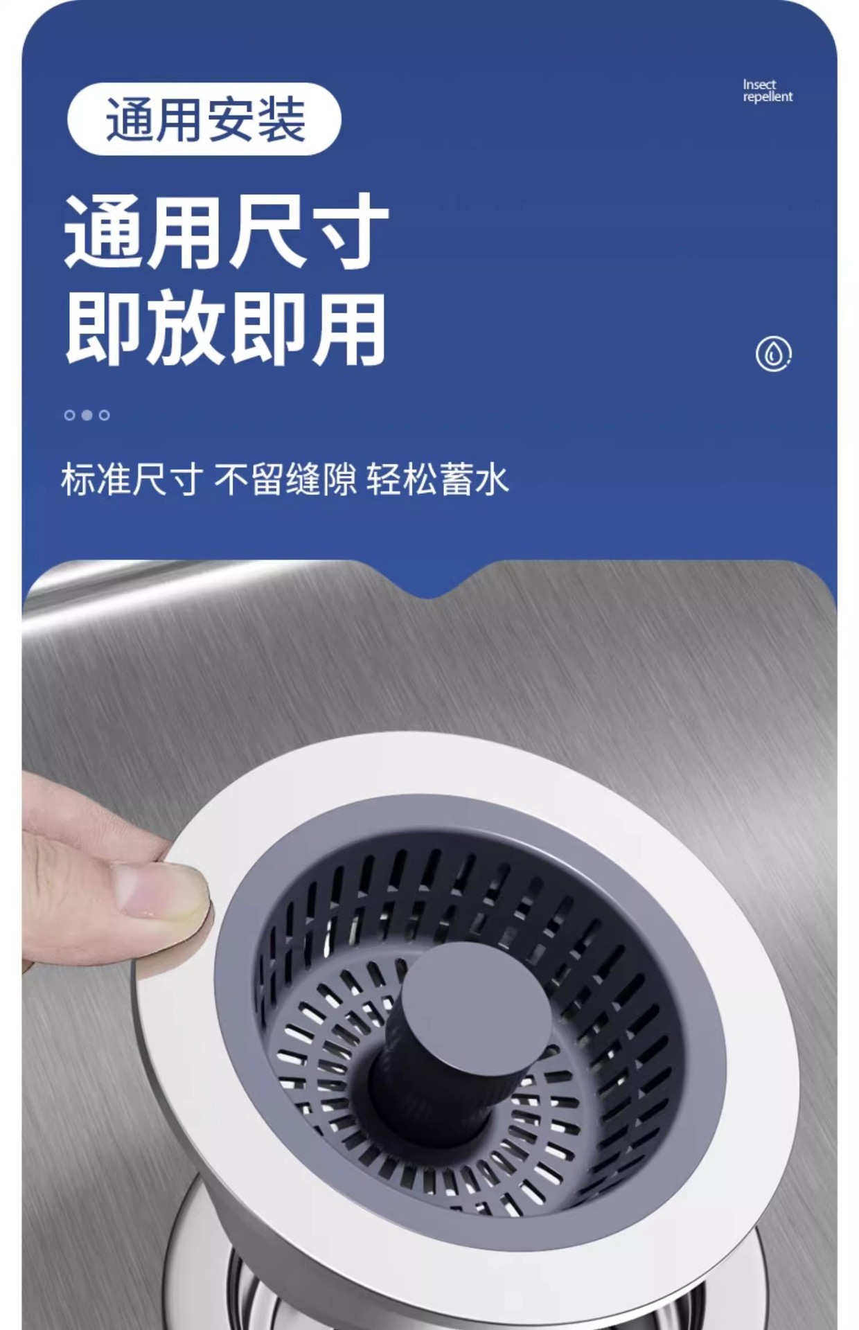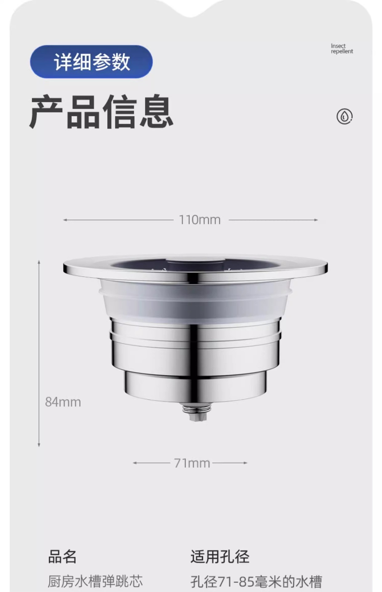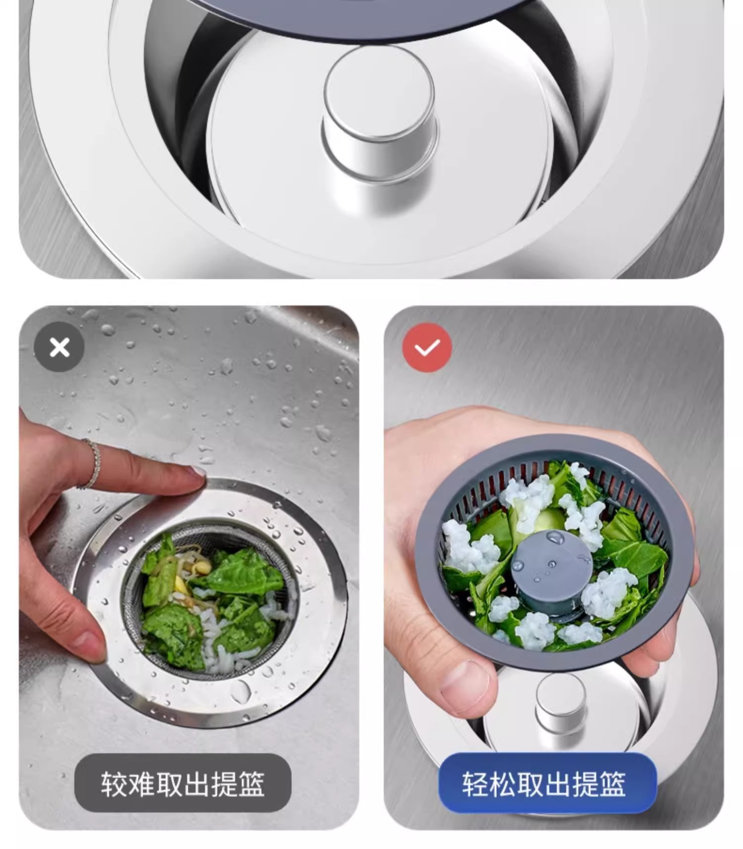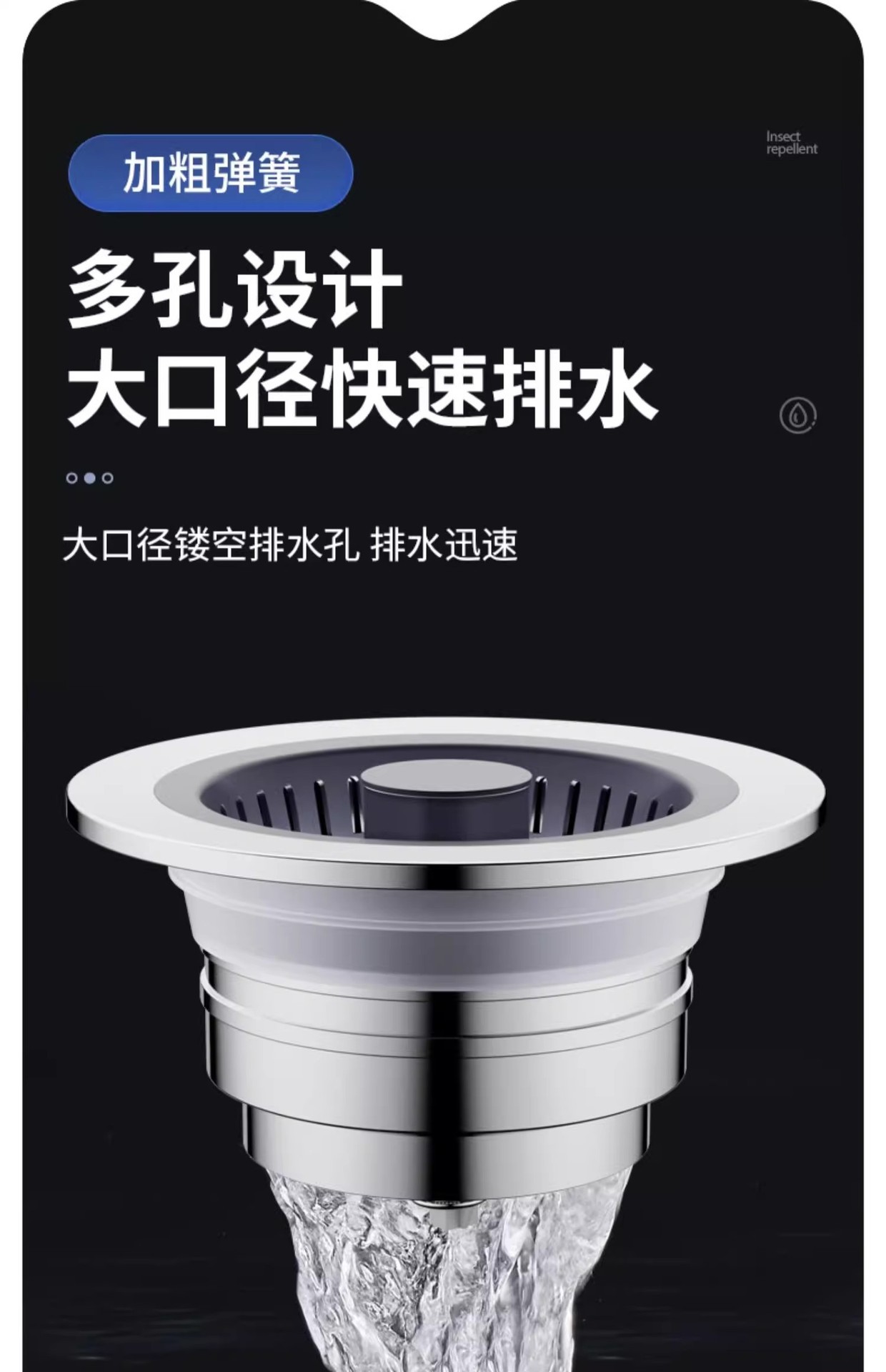 不锈钢厨房水槽过滤网按压式洗菜盆漏水塞通用款水槽弹跳芯下水器
