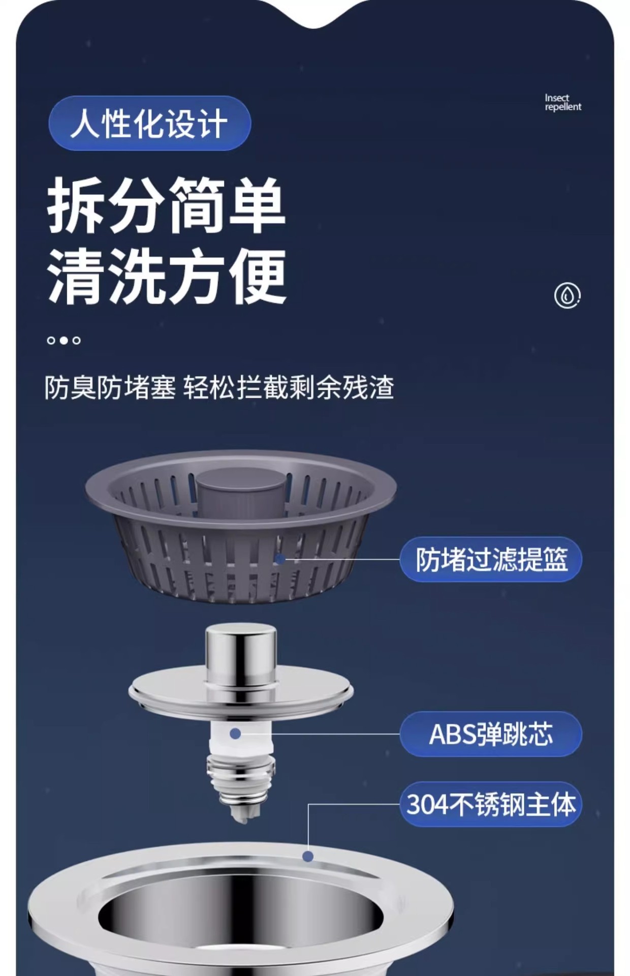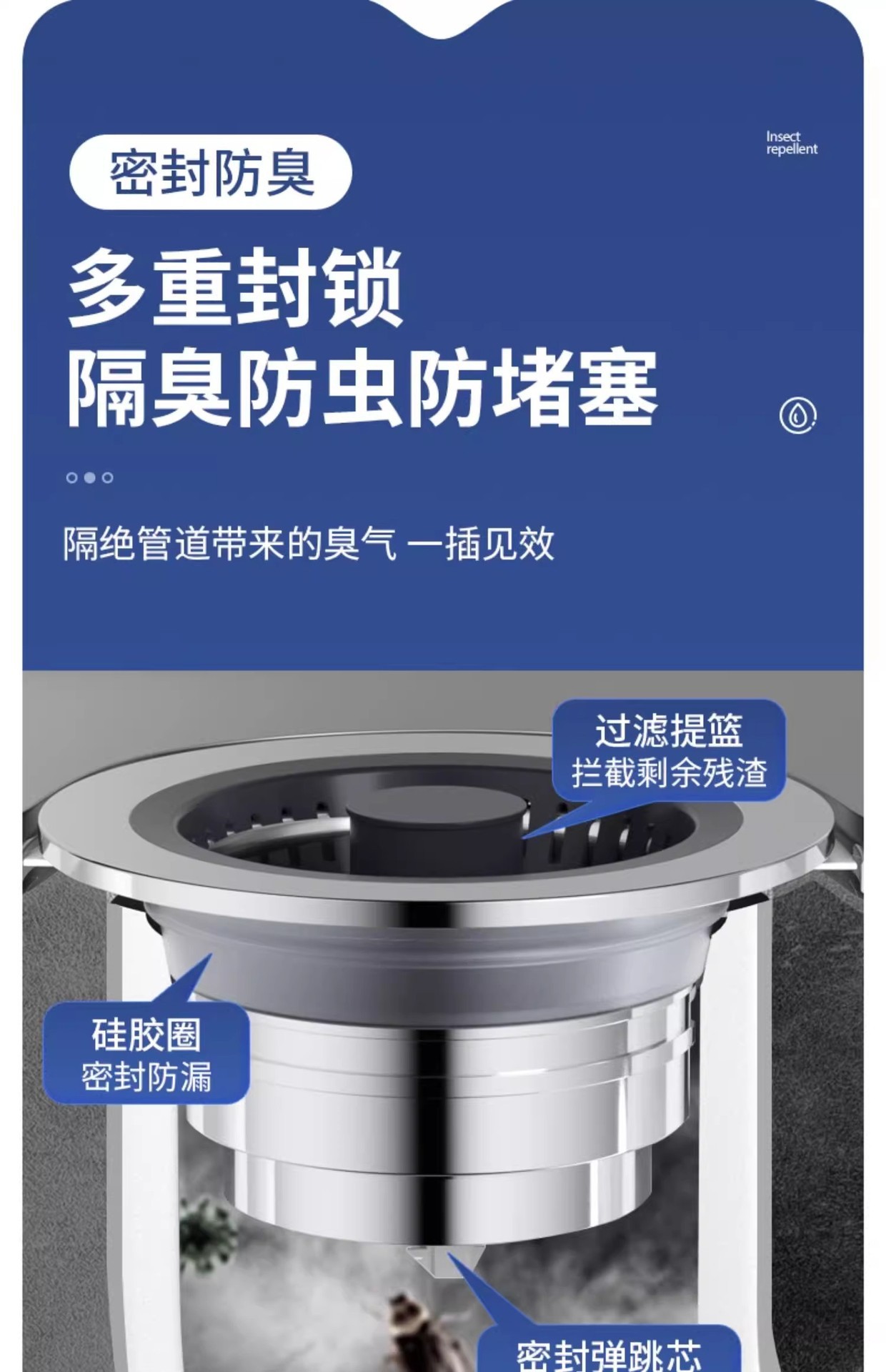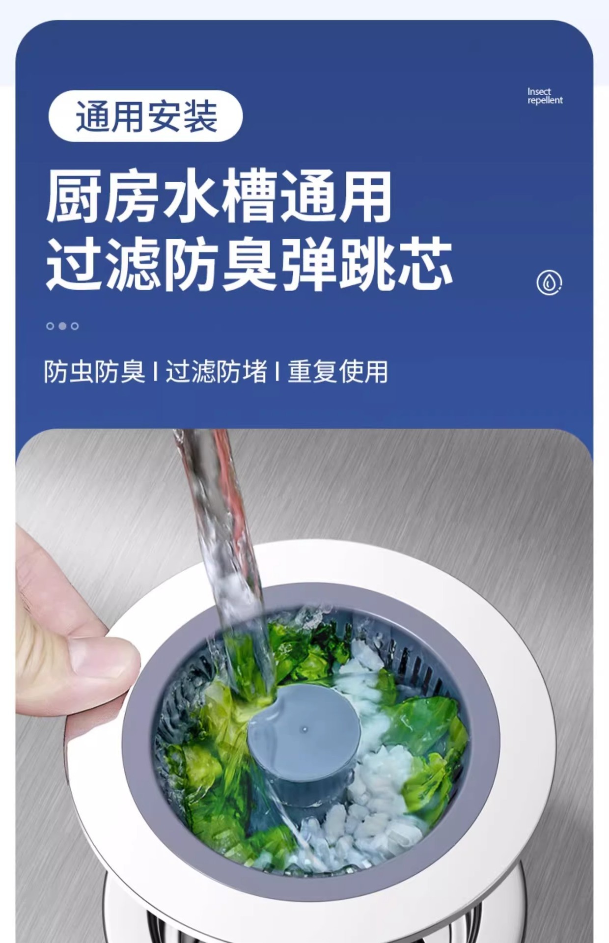洗菜盆按压式厨房水槽过滤网槽洗碗池下水器塞洗碗槽过滤网防臭芯