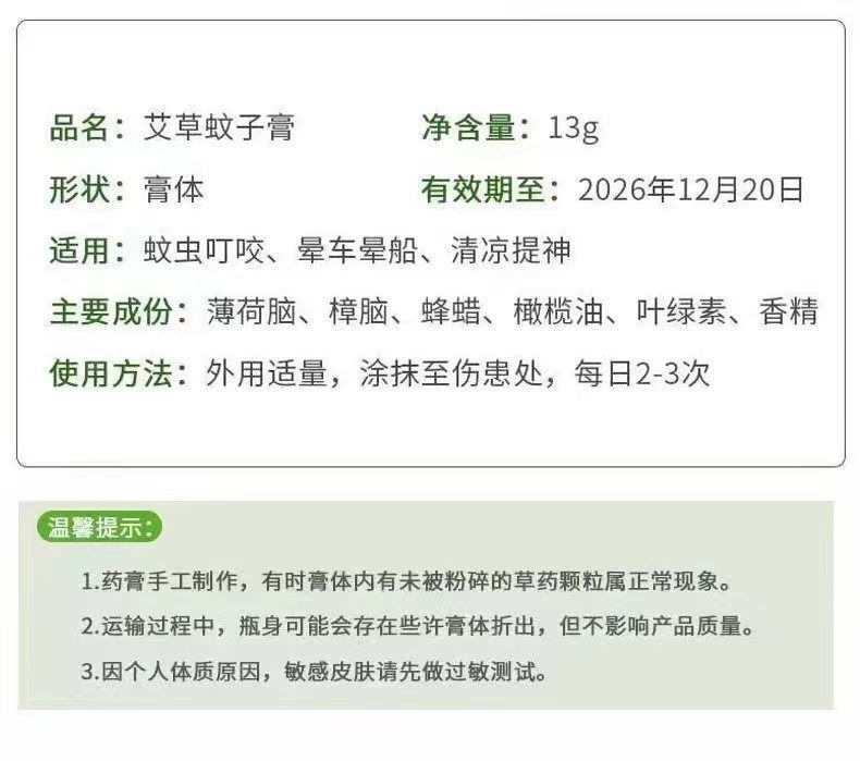 舒痒膏13g艾草蚊膏防蚊刺されてかゆみを止めて目を覚ます家庭用清涼かゆみ止め膏卸売り