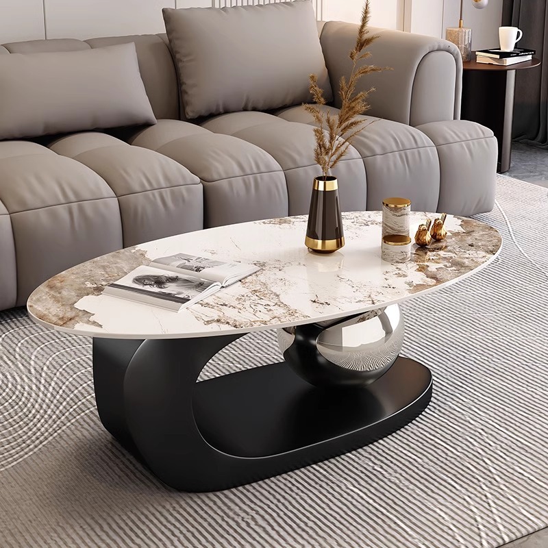 軽く豪華でハイエンドの家庭用小さなアパートのリビングルームスレートコーヒーテーブルモダンシンプルイタリアンインターネットセレブオーバルコーヒーテーブルテーブル