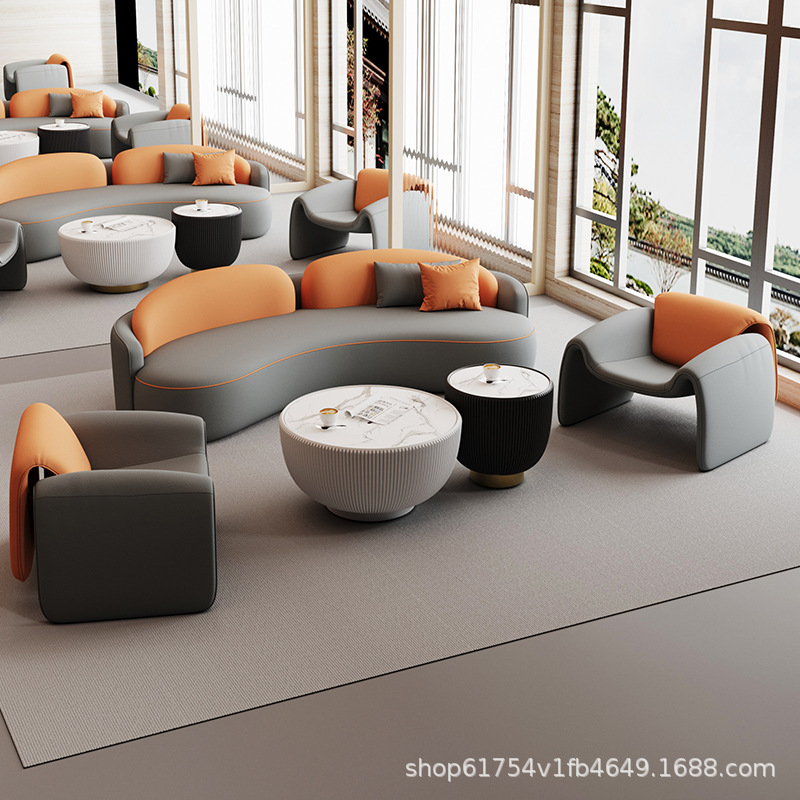 办公室洽谈酒店大堂贵宾会所弧形沙发现代简约4s店商用休息区接待