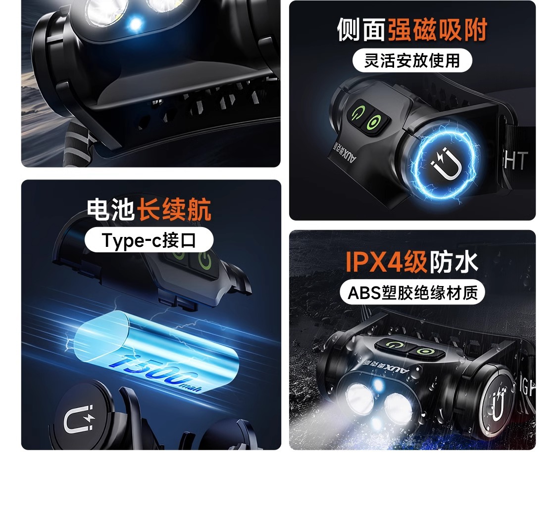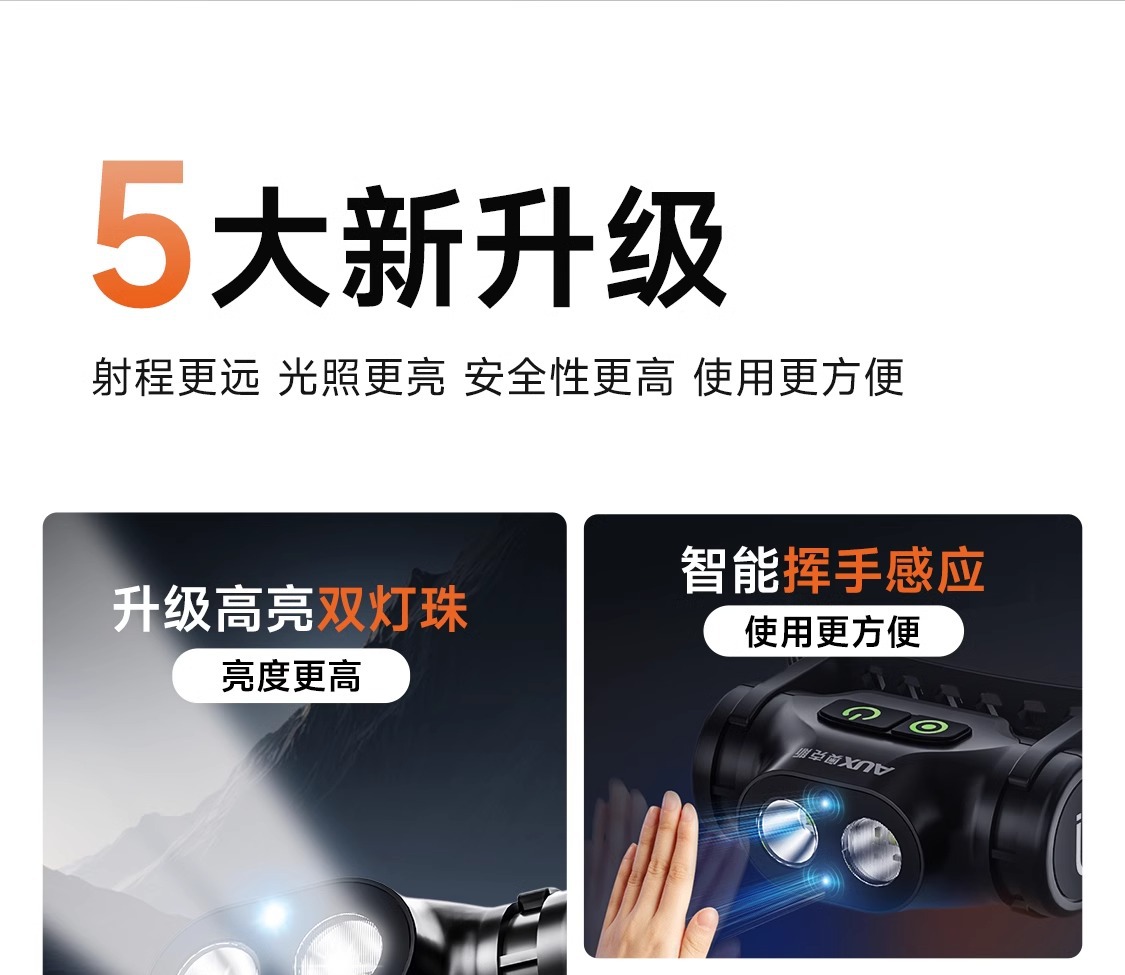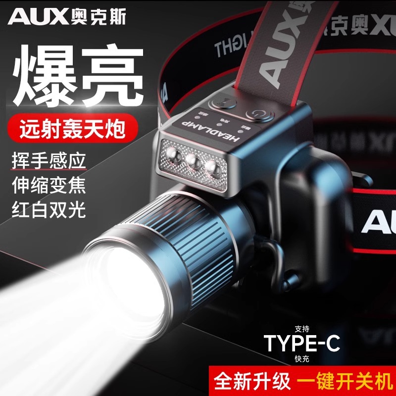 新款充电高亮工作灯家用头戴式照明夜钓灯长续航感应户外强光头灯