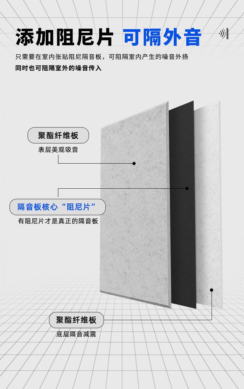 复合阻尼隔音板隔音聚酯纤维吸音板墙体卧室家用KTV墙面消音板