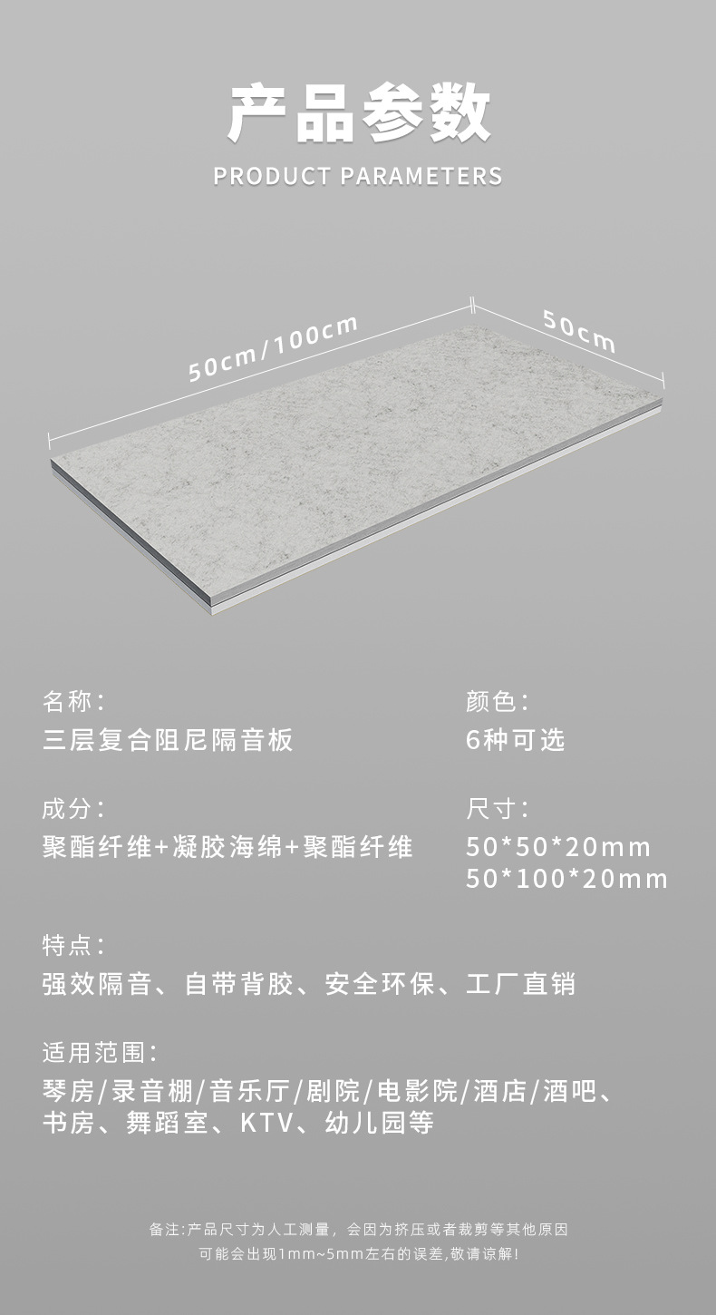 复合阻尼吸音板聚酯纤维隔音板超强隔音棉自粘墙贴房间隔音棉家用