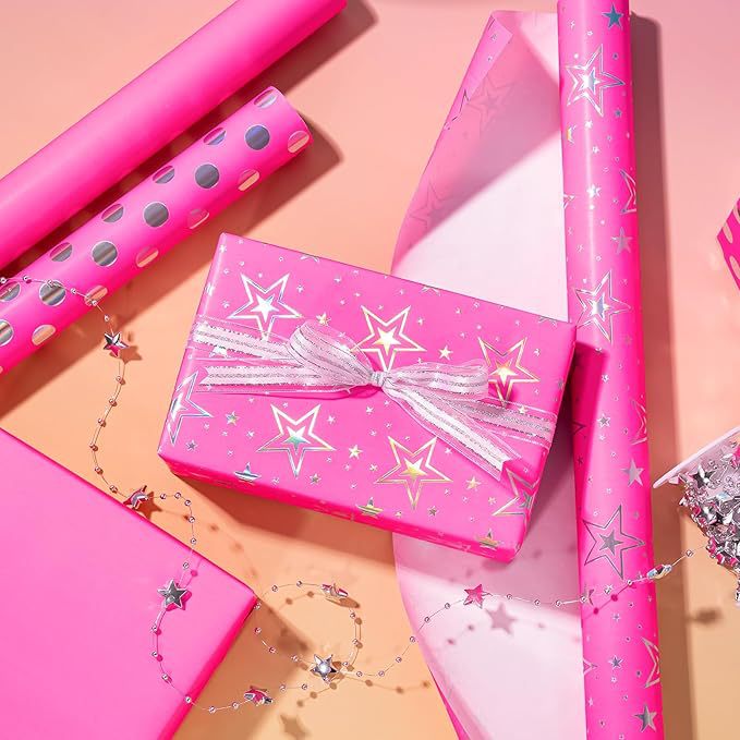 新品跨境亚马逊镭射镀铝礼品包装生日圆点星星图案高级礼物包装纸