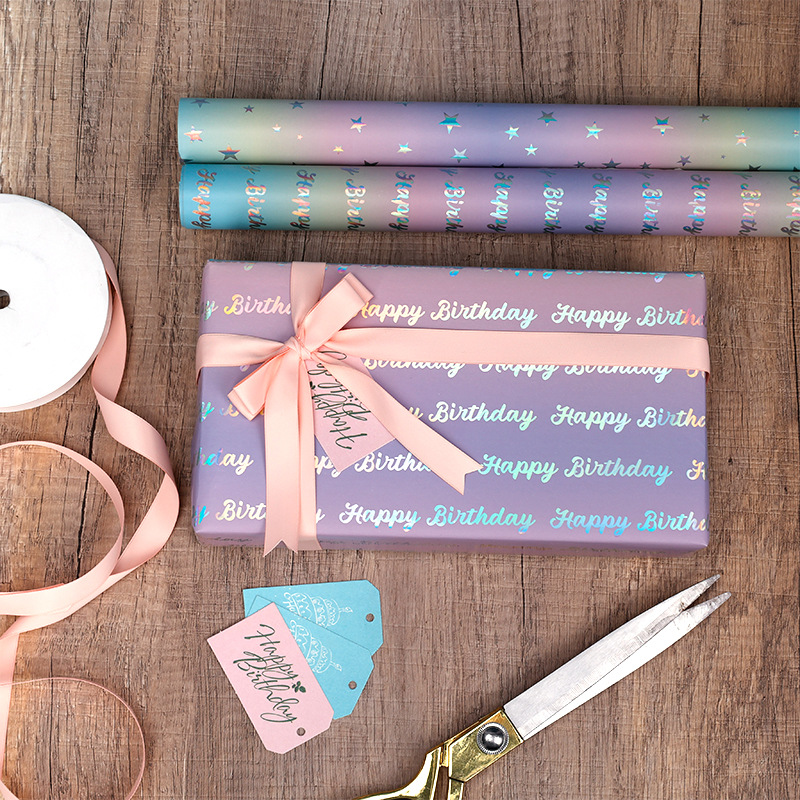 アマゾン誕生日おめでとうパーティープレゼント包装紙バレンタインデーギフトボックス日常海洋要素光沢アルミ紙