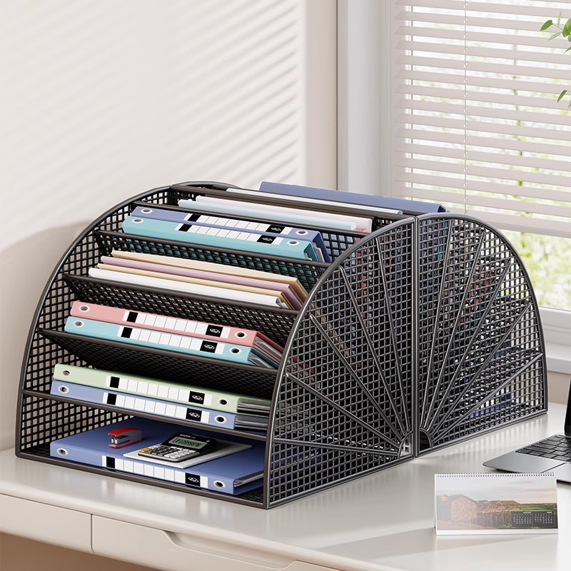 扇形金属文件夹收纳架办公桌文件收纳盒桌面多层置物架立式文件框