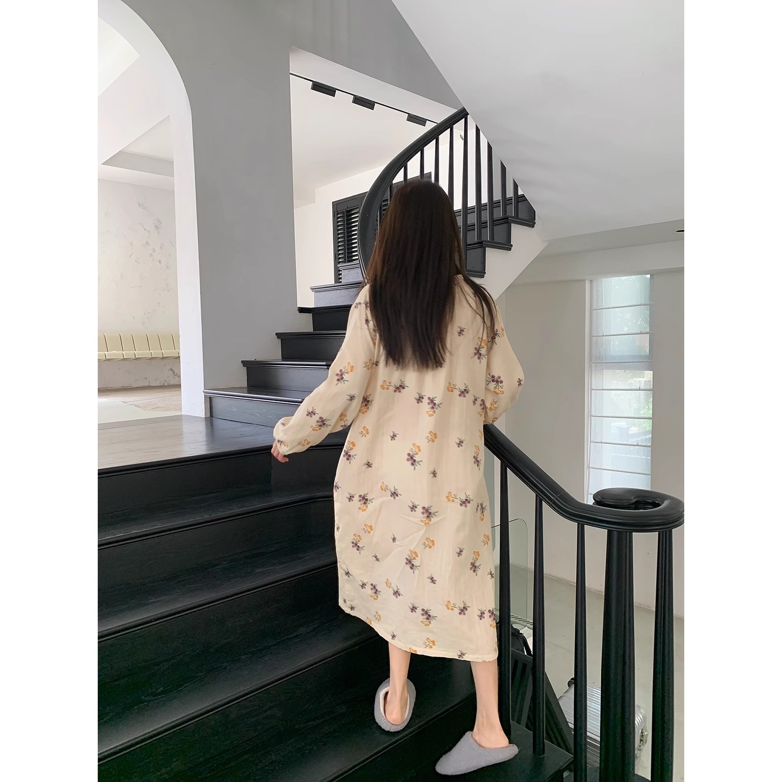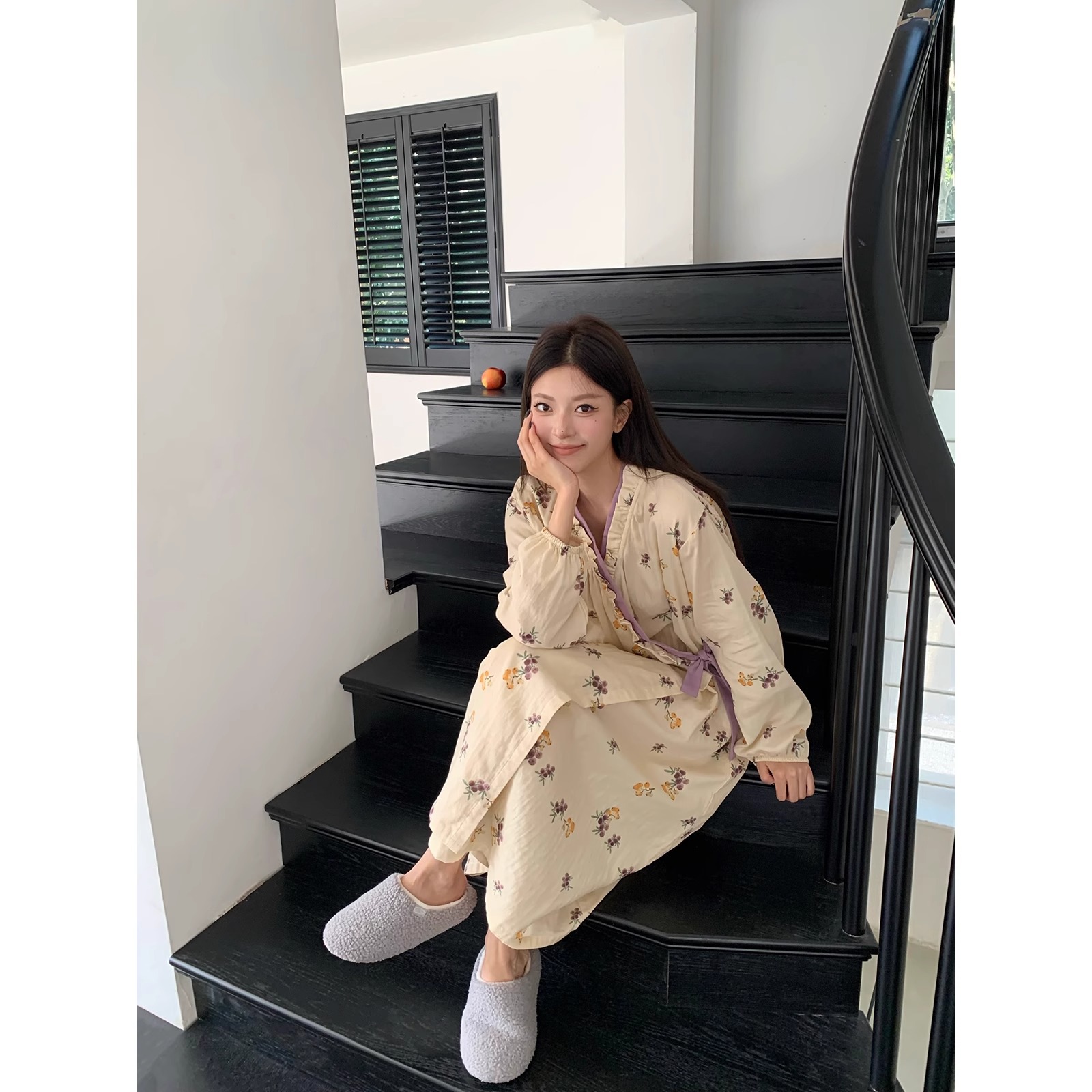 新款睡衣春秋款女休闲宽松时尚甜美长袖睡袍裙家居服可外穿