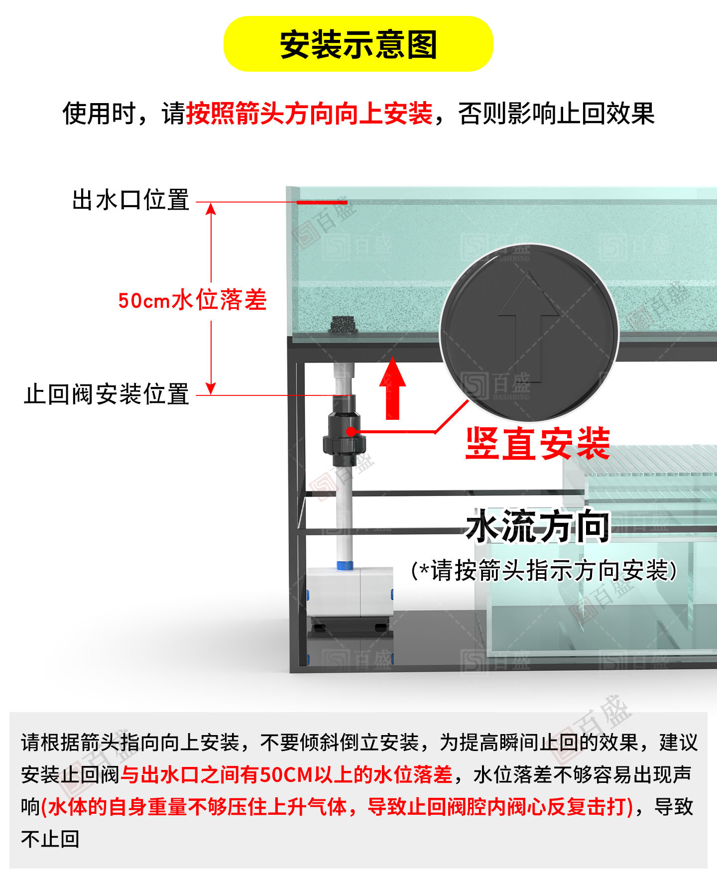 PVCダブルは逆止弁から昇降式の水槽をひっくり返します。