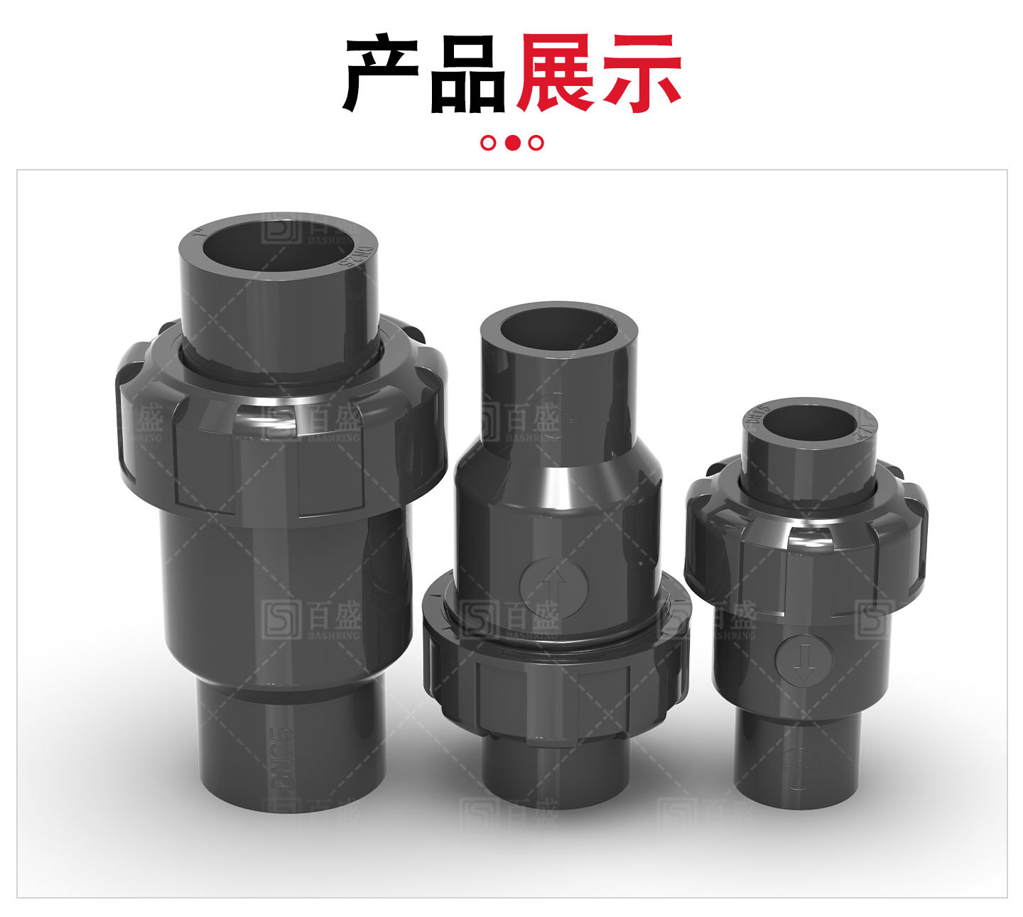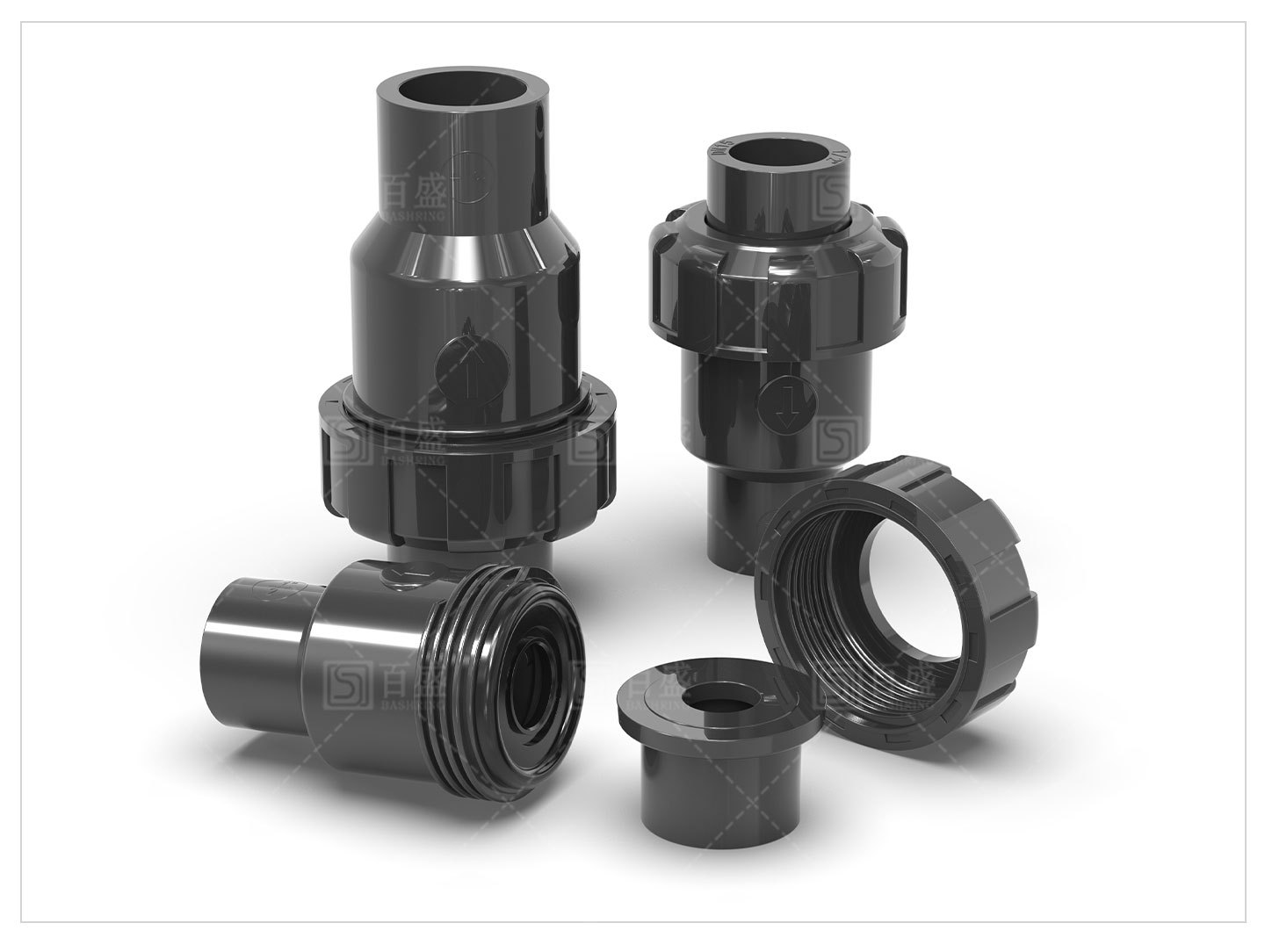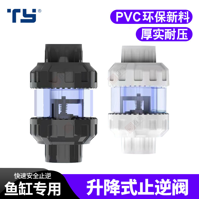 UPVC双活接続逆止弁水槽単方向弁双由令立式球式逆止弁工業級部品深灰