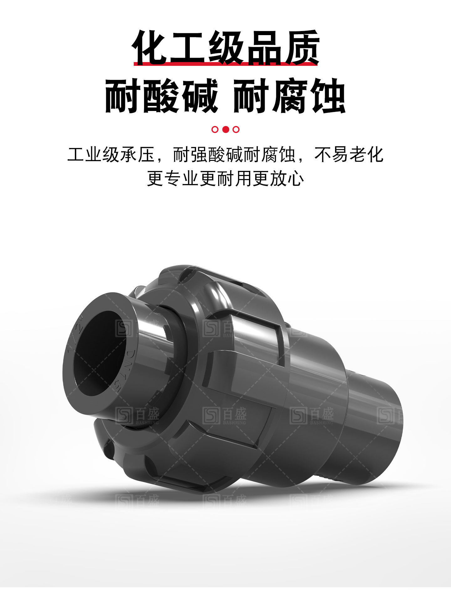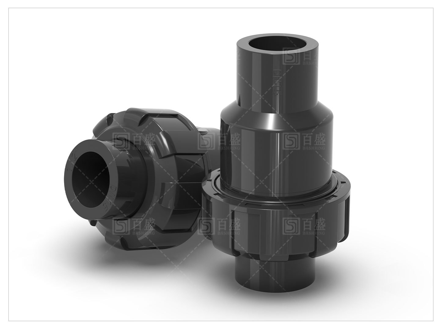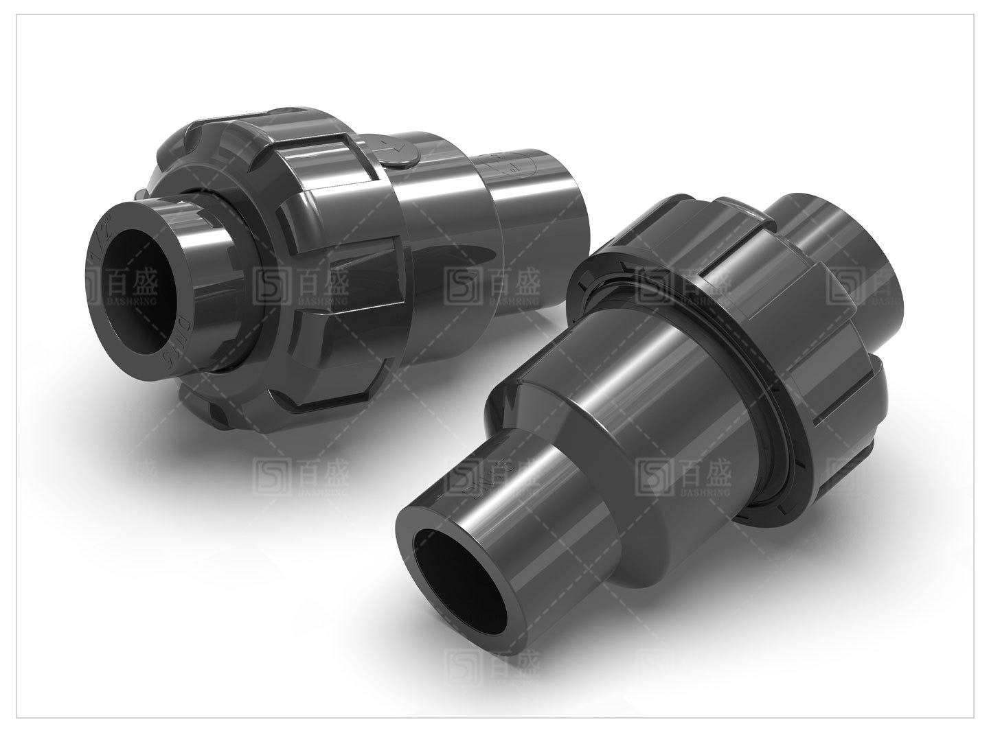 UPVC双活接続逆止弁水槽単方向弁双由令立式球式逆止弁工業級部品深灰