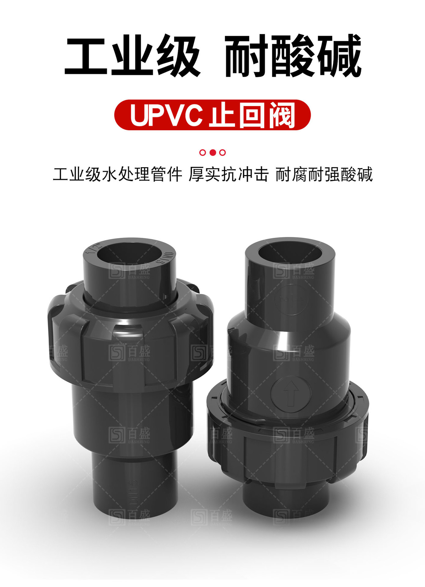 Upvcボール型逆止弁美標日標水管立式逆止中間弁工業プラスチック管部品