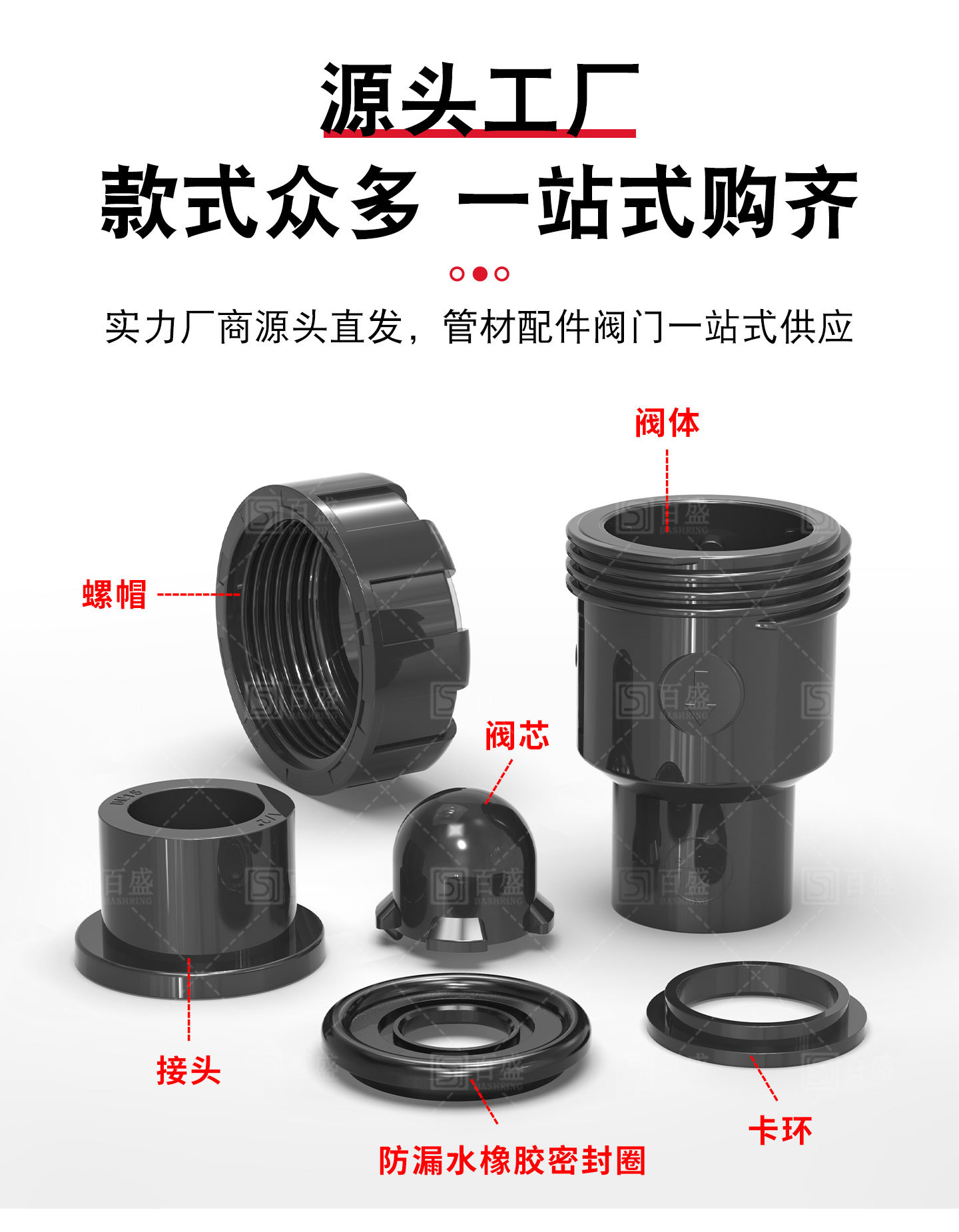 百盛黒色pvc直曲上下水道管立体四通回転箱通気帽水槽ボール弁活接部品