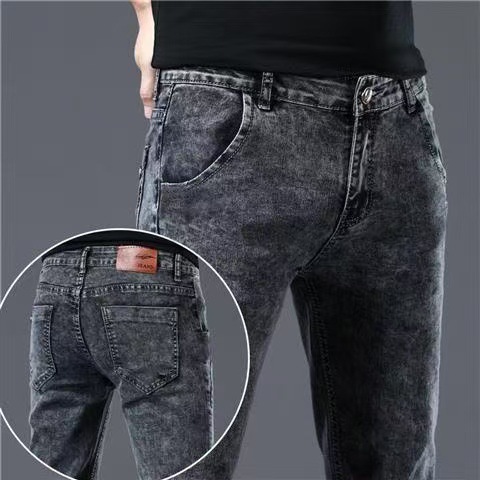 ジーパンの男性2025年と秋のファッションブランドの修身の小さい足の韓国版の潮流の新型の百合のカジュアルな弾力の長いズボン
