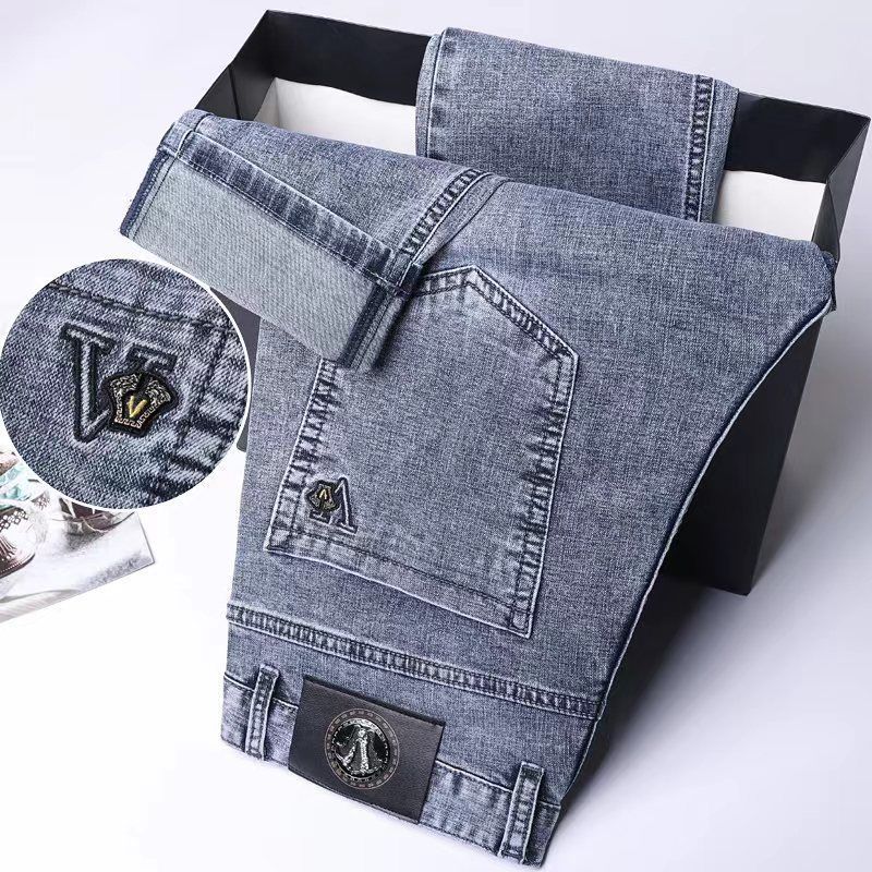 高档夏季薄款新款弹力牛仔裤潮流薄款宽松直筒百搭男士休闲裤子男