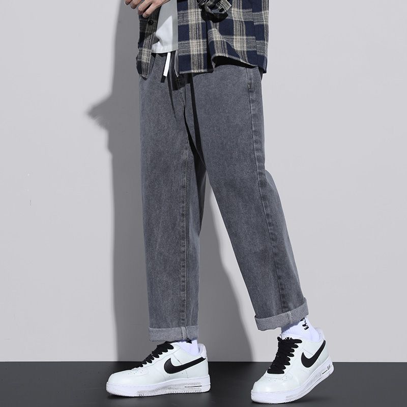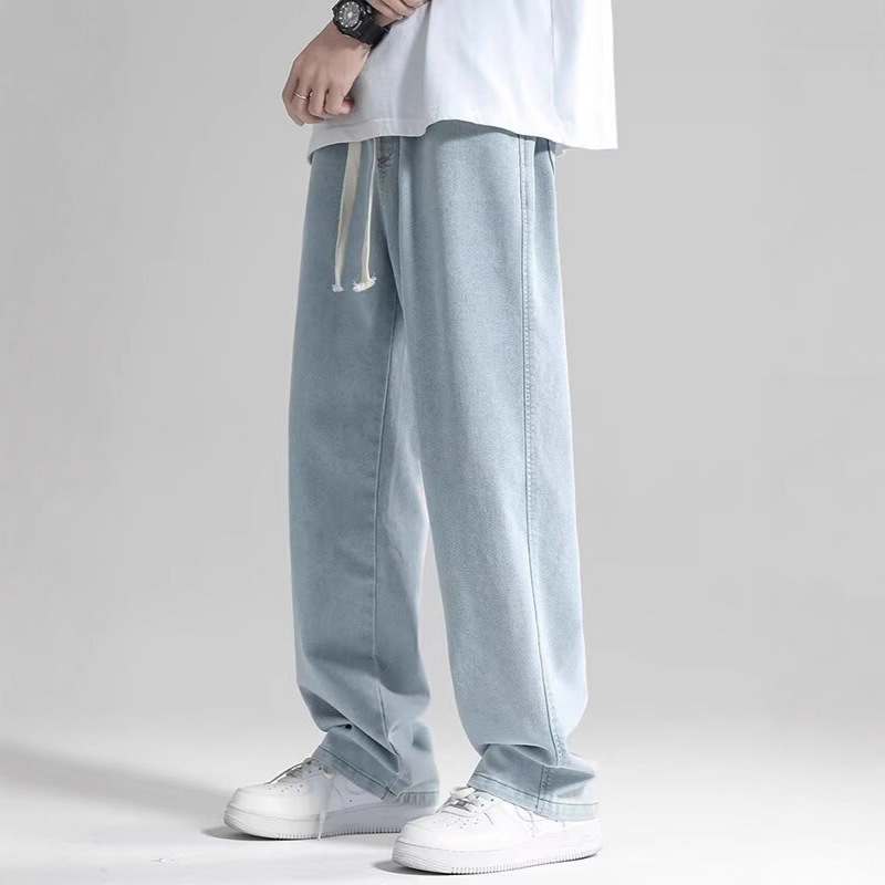 新款高街纯色牛仔裤男士宽松百搭休闲男裤春夏潮牌松紧腰阔腿裤子